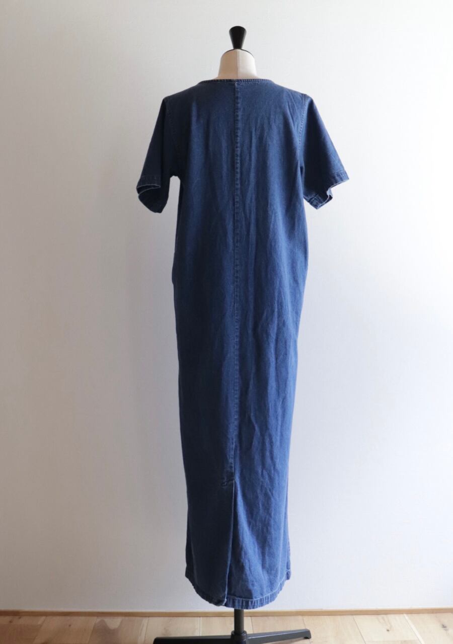 フロント部分の花柄の刺繍がポイントのドレス。ストンと落ちるアイラインのシルエット。159㎝着用で床から2、3cmほどの丈感。バックにはスリットがあり足捌きも良いです。ウエスト部分の両サイドにおそらく紐が付いていたであろう跡がございます。ウエスト紐は無しですがシシルエットはきれいでほっこりするような可愛いロングドレスです。