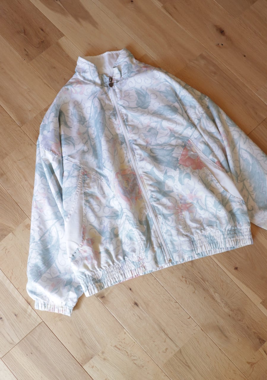 淡いトーンのボタニカル柄が優しい印象のライトジャケット。