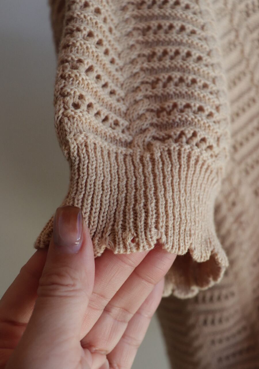 やわらかなベージュカラーが魅力の、オーストラリア製コットンニット。