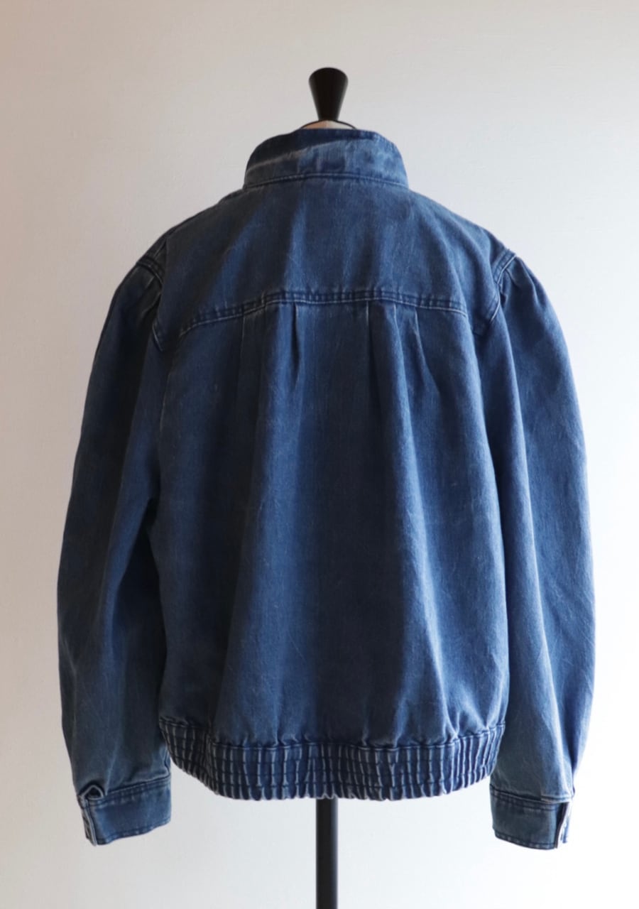ボリュームが可愛いデニムジャケット。肩やフロント、バックにもギャザーでパフスリーブで全体的にボリュームを感じるアイテムで身幅も大きくオバーサイズでメンズカジュアル感が高くなりがちなデニムも女性らしく可愛く着用していただけます。