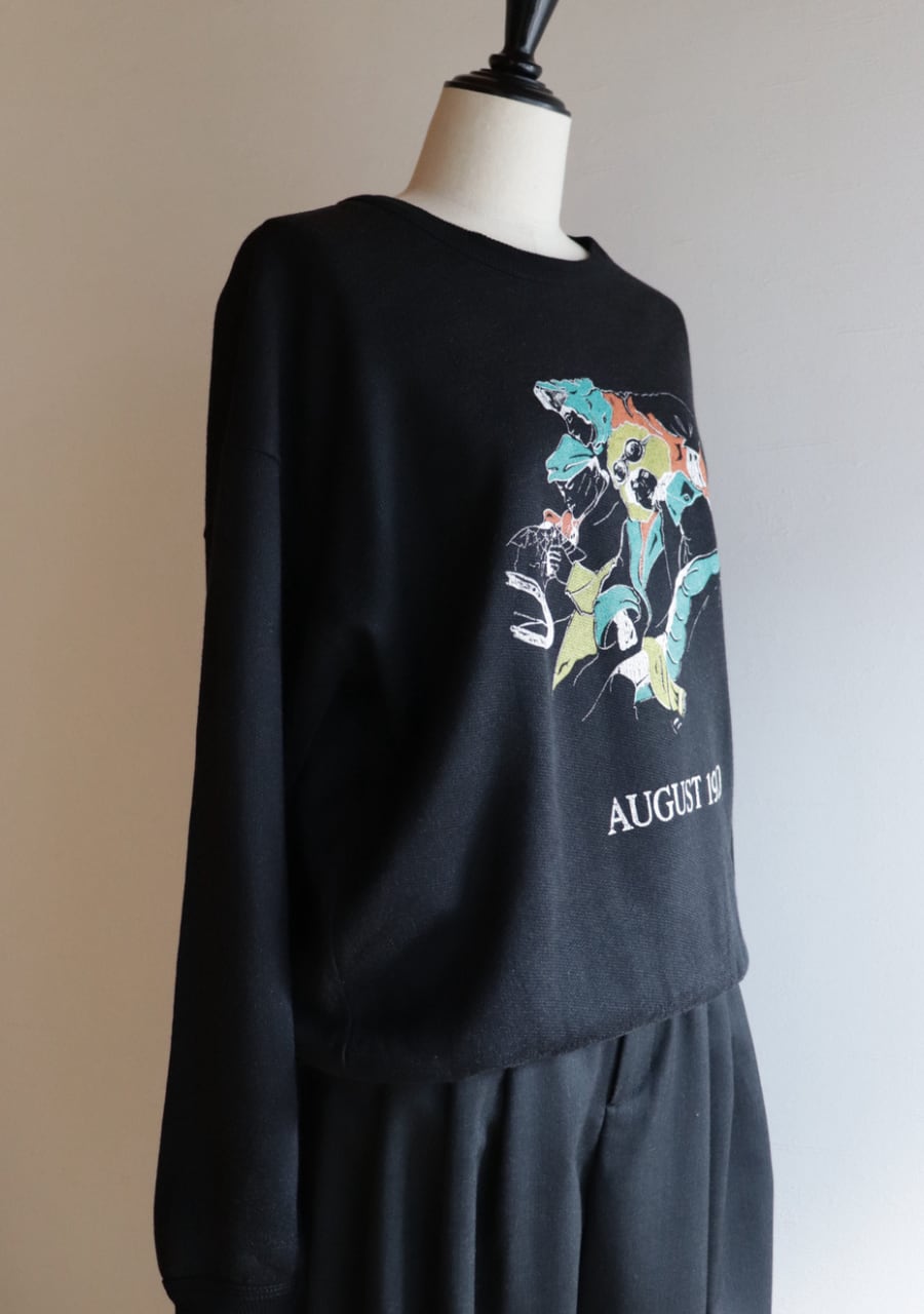 薄手の生地で裏起毛が若干ある生地。生地がやわらかく薄いのでロンT間隔での薬用も可能。色味かわいいプリントです。