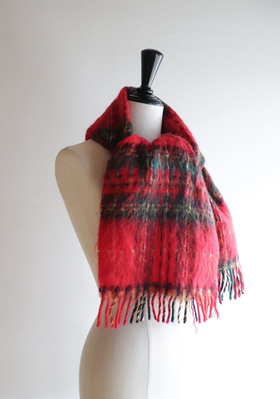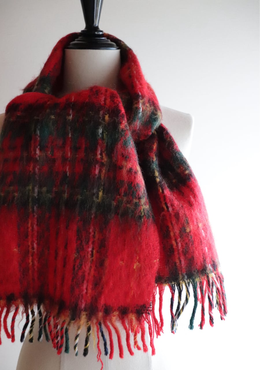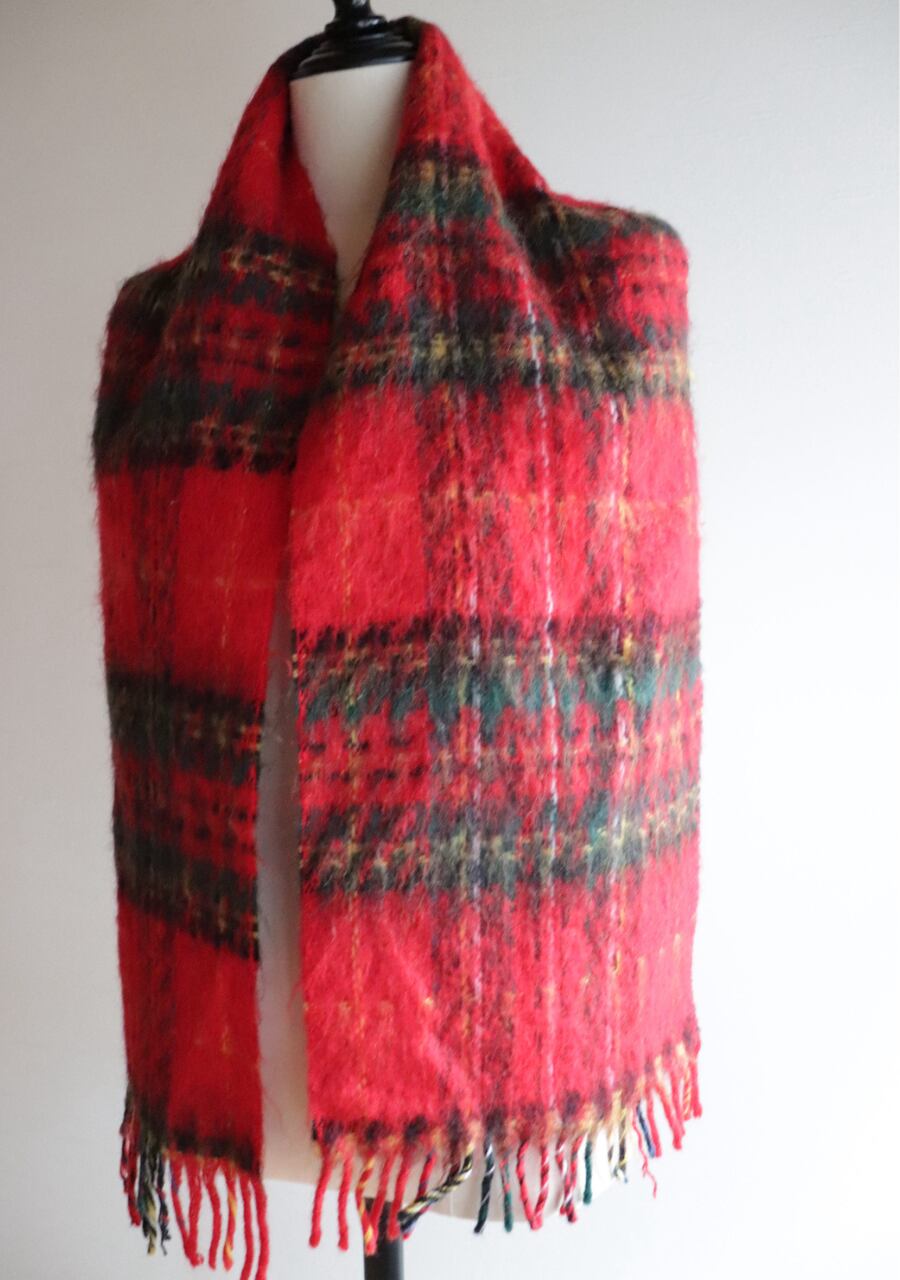 レッドのアクセントカラーとして取り入れていただける暖かアイテム。細目で気軽に取り入れやすく使いやすい。巻き方もいろいろ試せる程よい長さです。