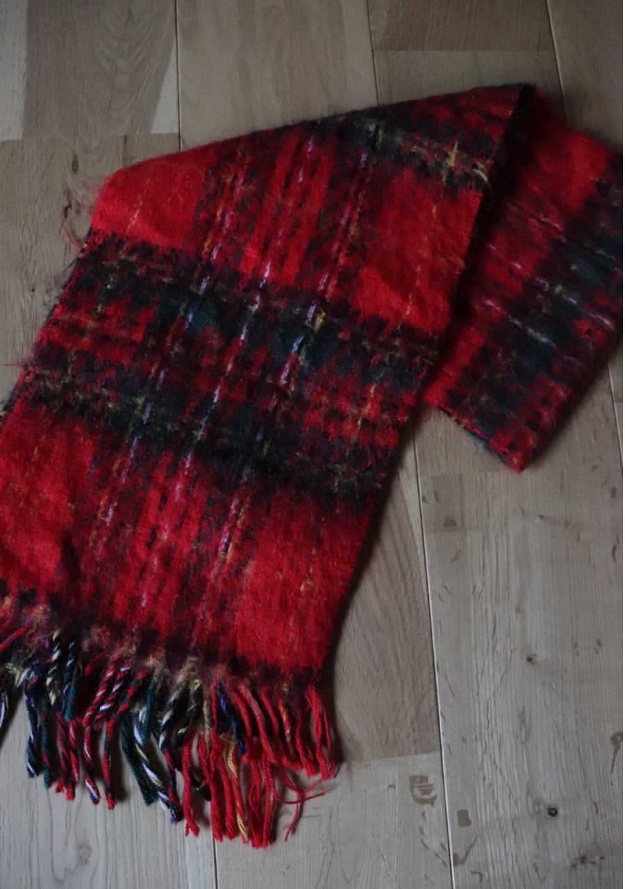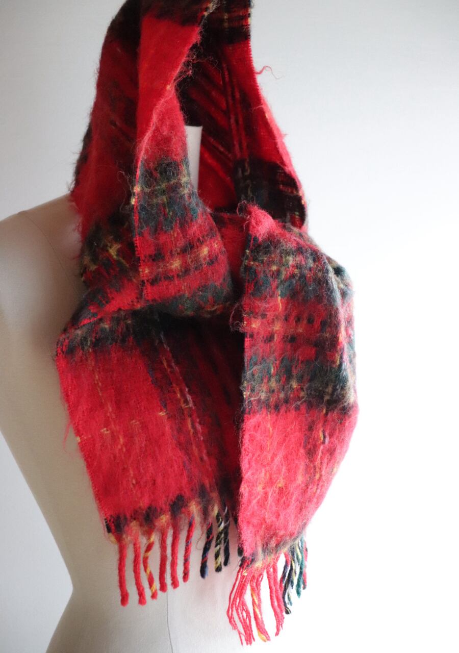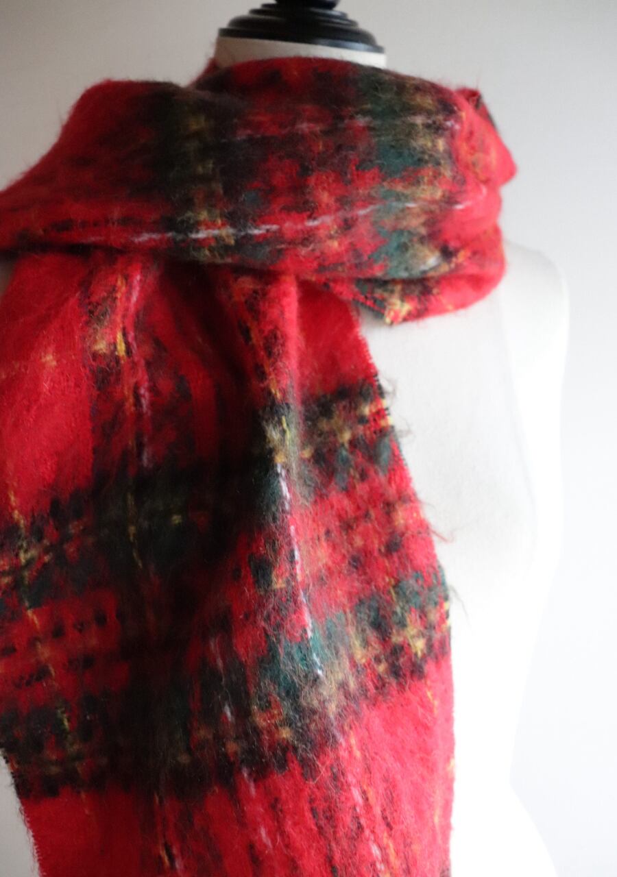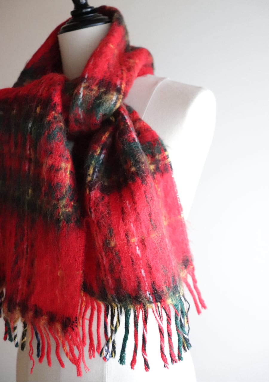 レッドのアクセントカラーとして取り入れていただける暖かアイテム。細目で気軽に取り入れやすく使いやすい。巻き方もいろいろ試せる程よい長さです。