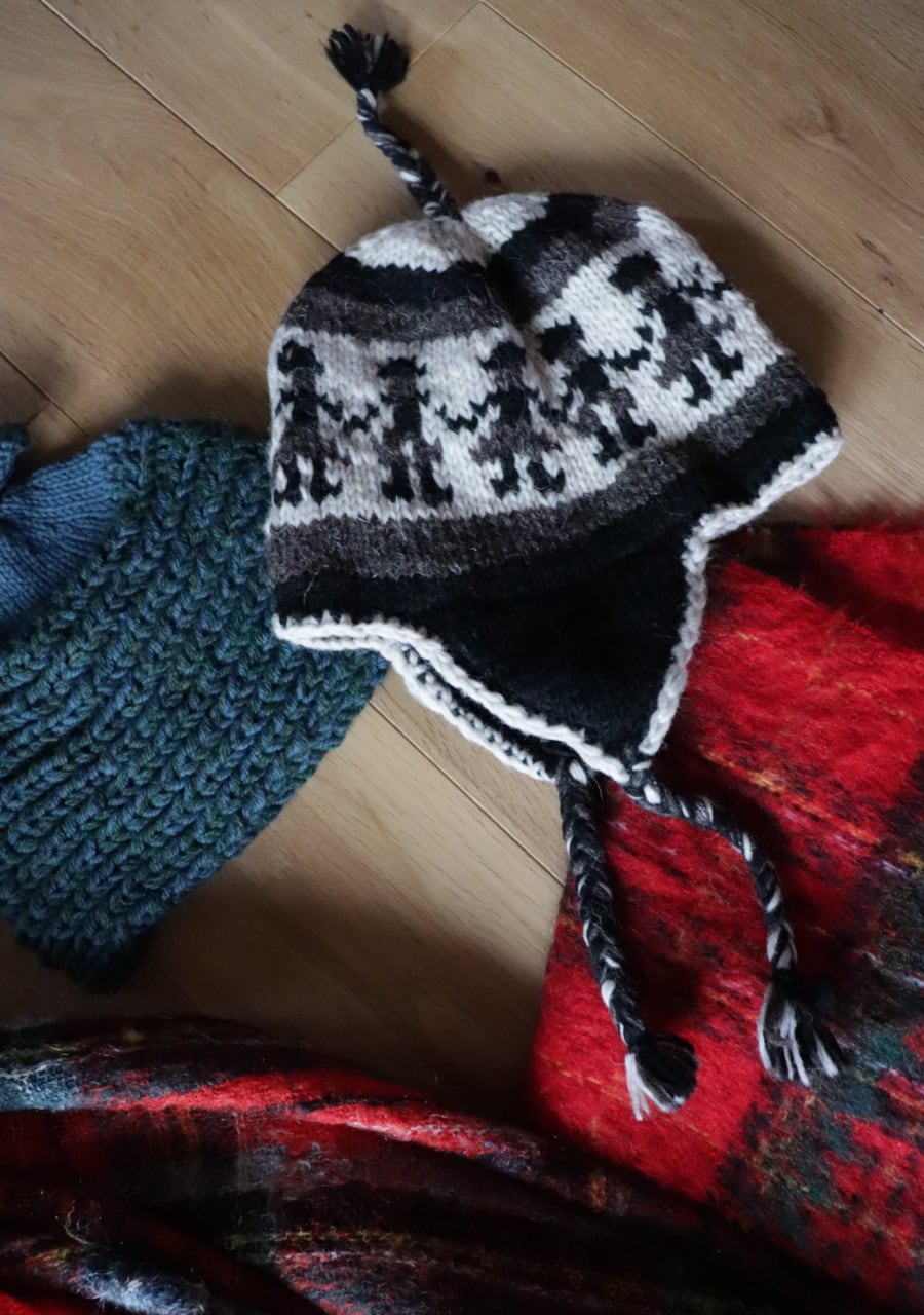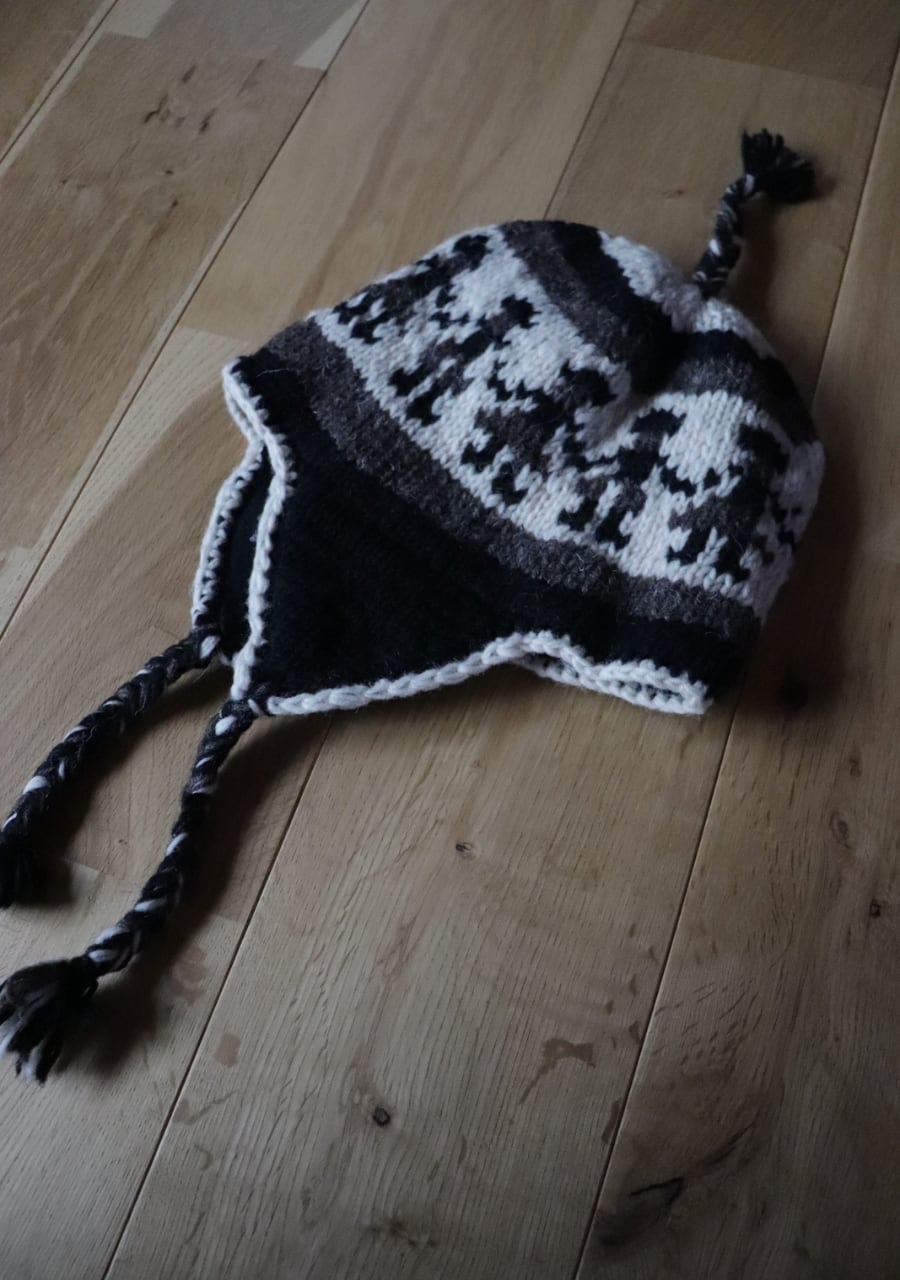 ear flap knit cap made in NEPAL