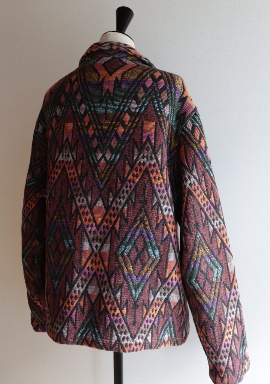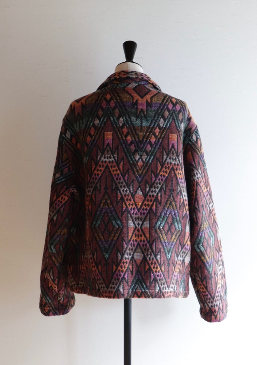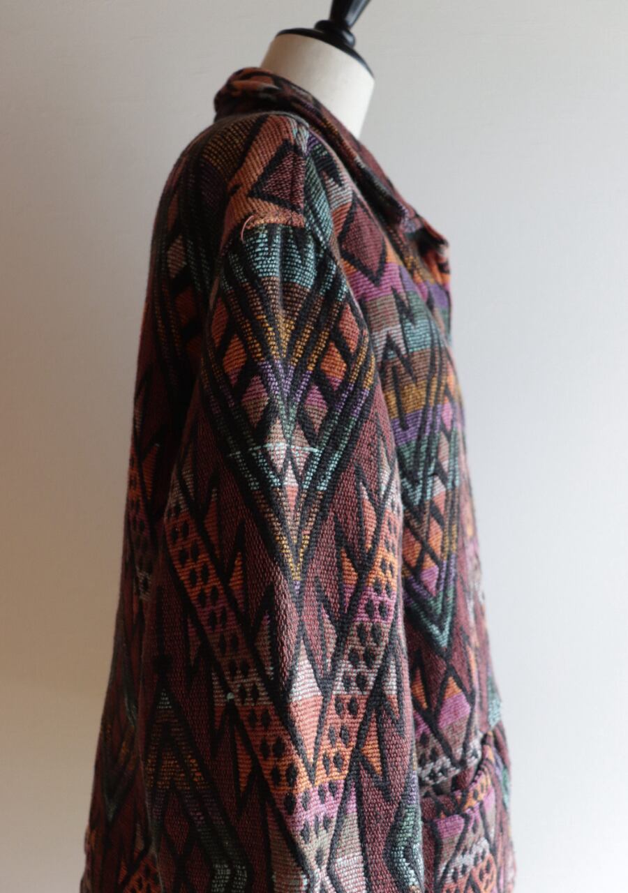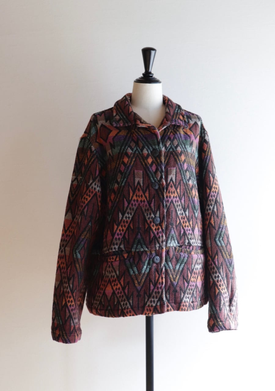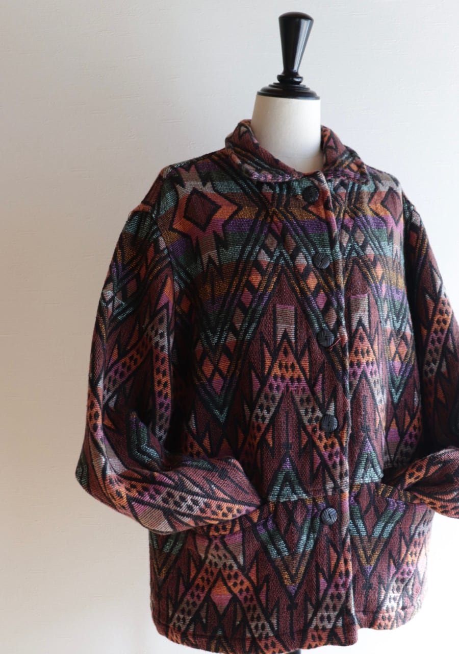 ゴブラン織りの生地が特徴で中厚生地のジャケット。温かみある色味が良い。ボタンを開けてもも閉めてもスタイリングしやすくレイヤードも楽しんでいただけます。