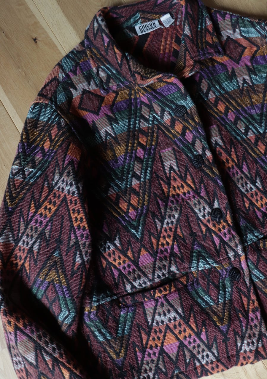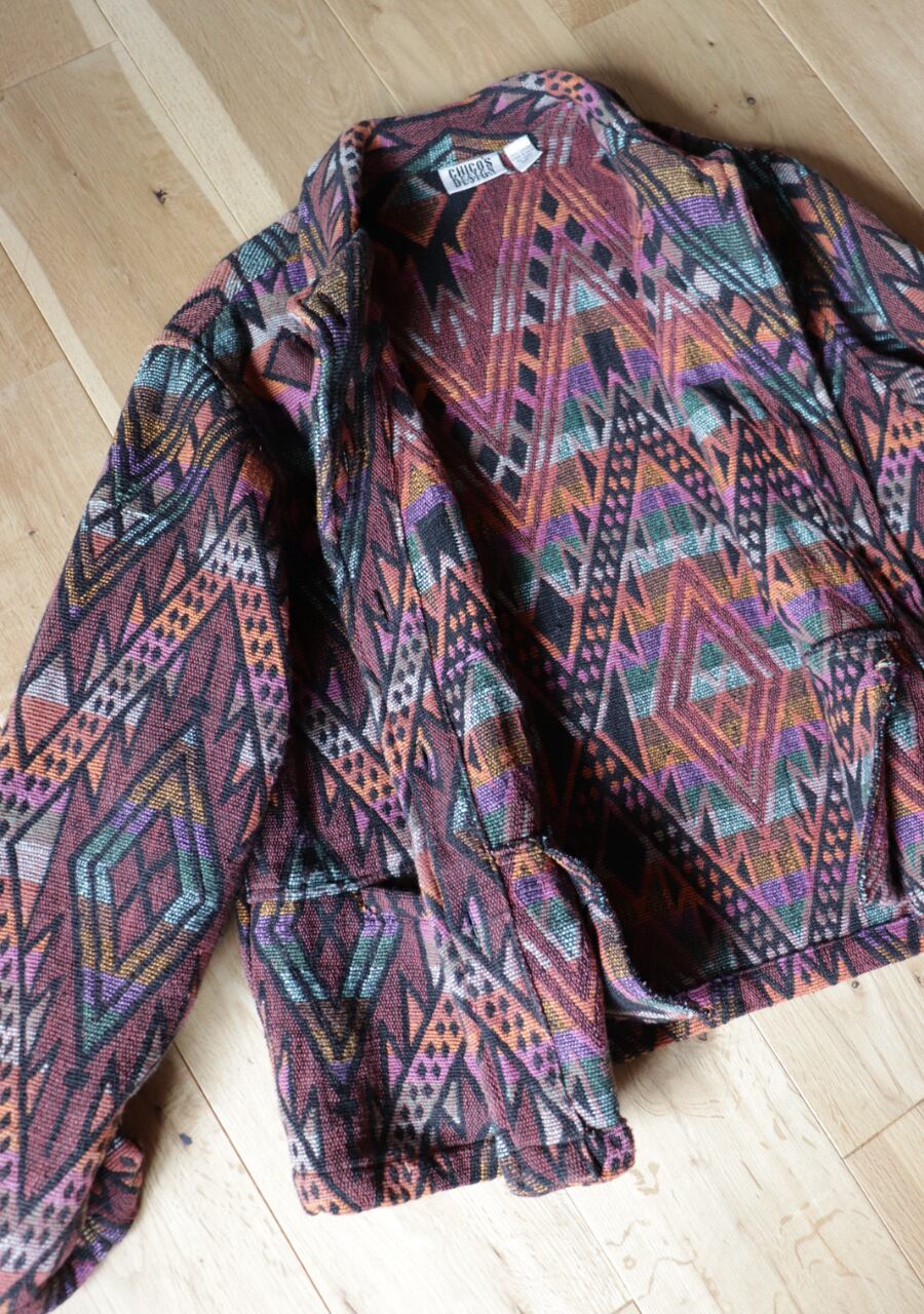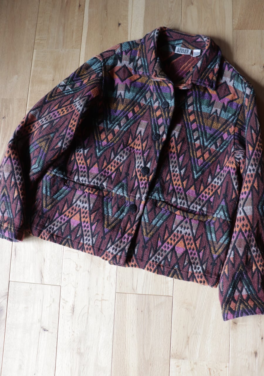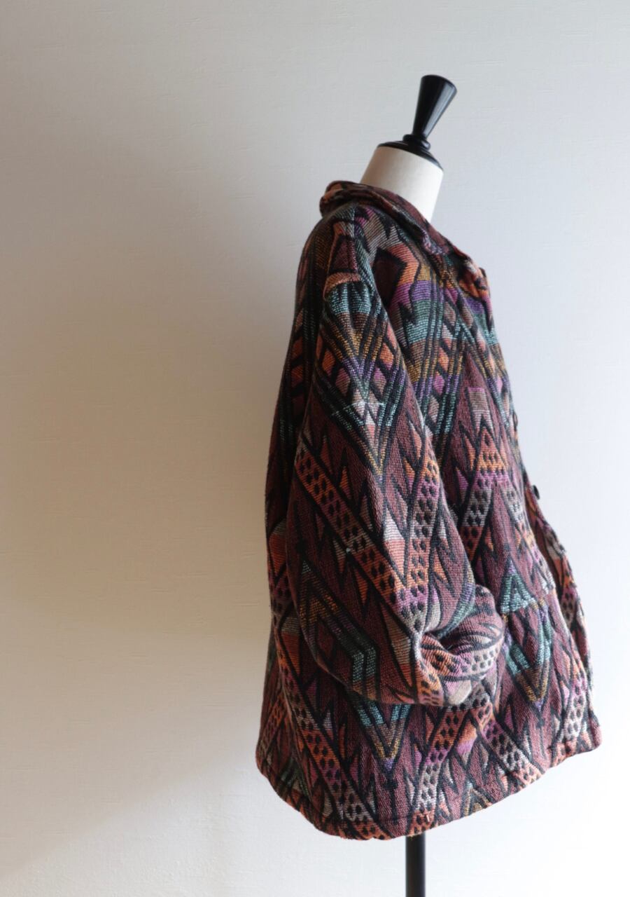 ゴブラン織りの生地が特徴で中厚生地のジャケット。温かみある色味が良い。ボタンを開けてもも閉めてもスタイリングしやすくレイヤードも楽しんでいただけます。