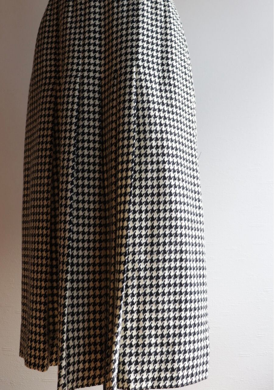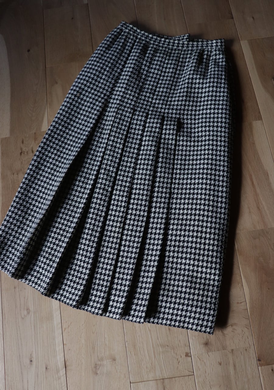 houndstooth pleated wool skirt made in USA