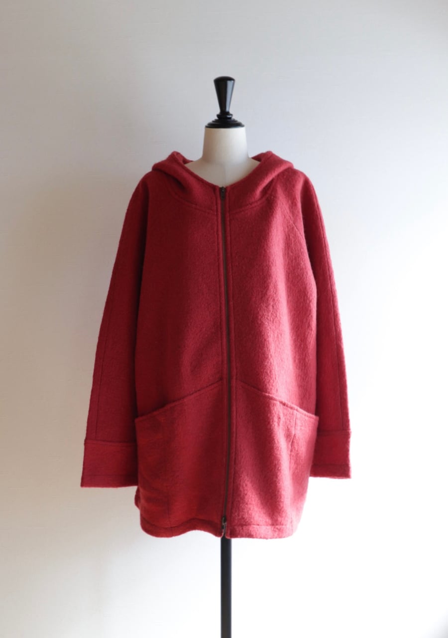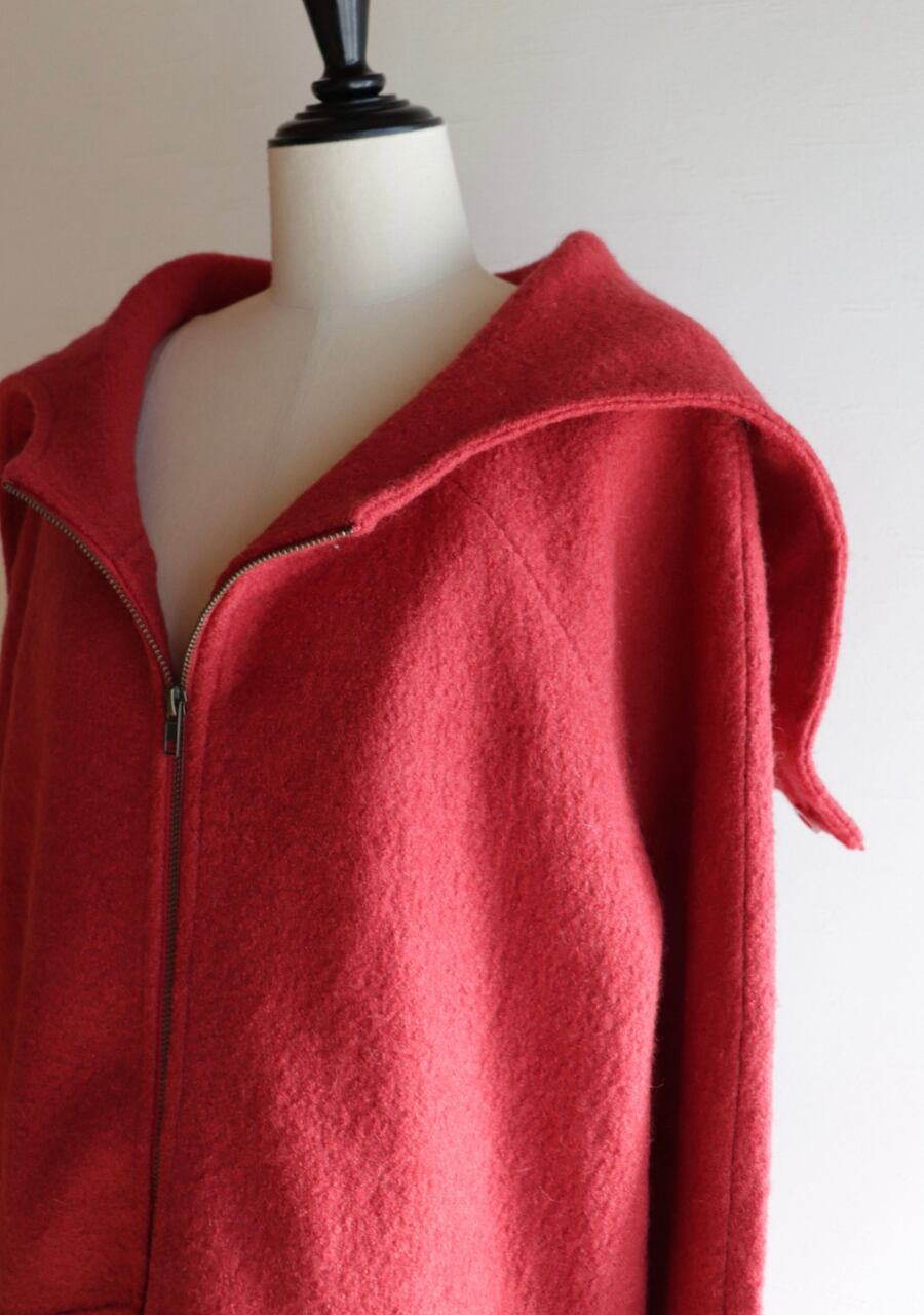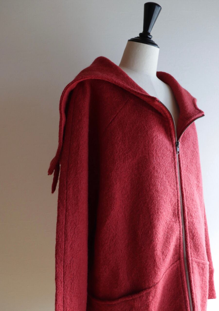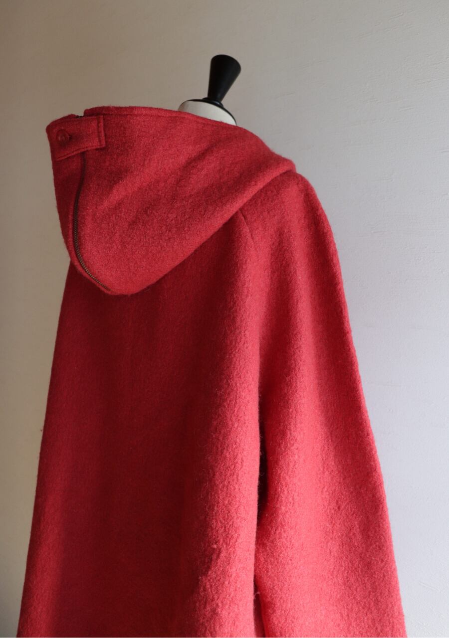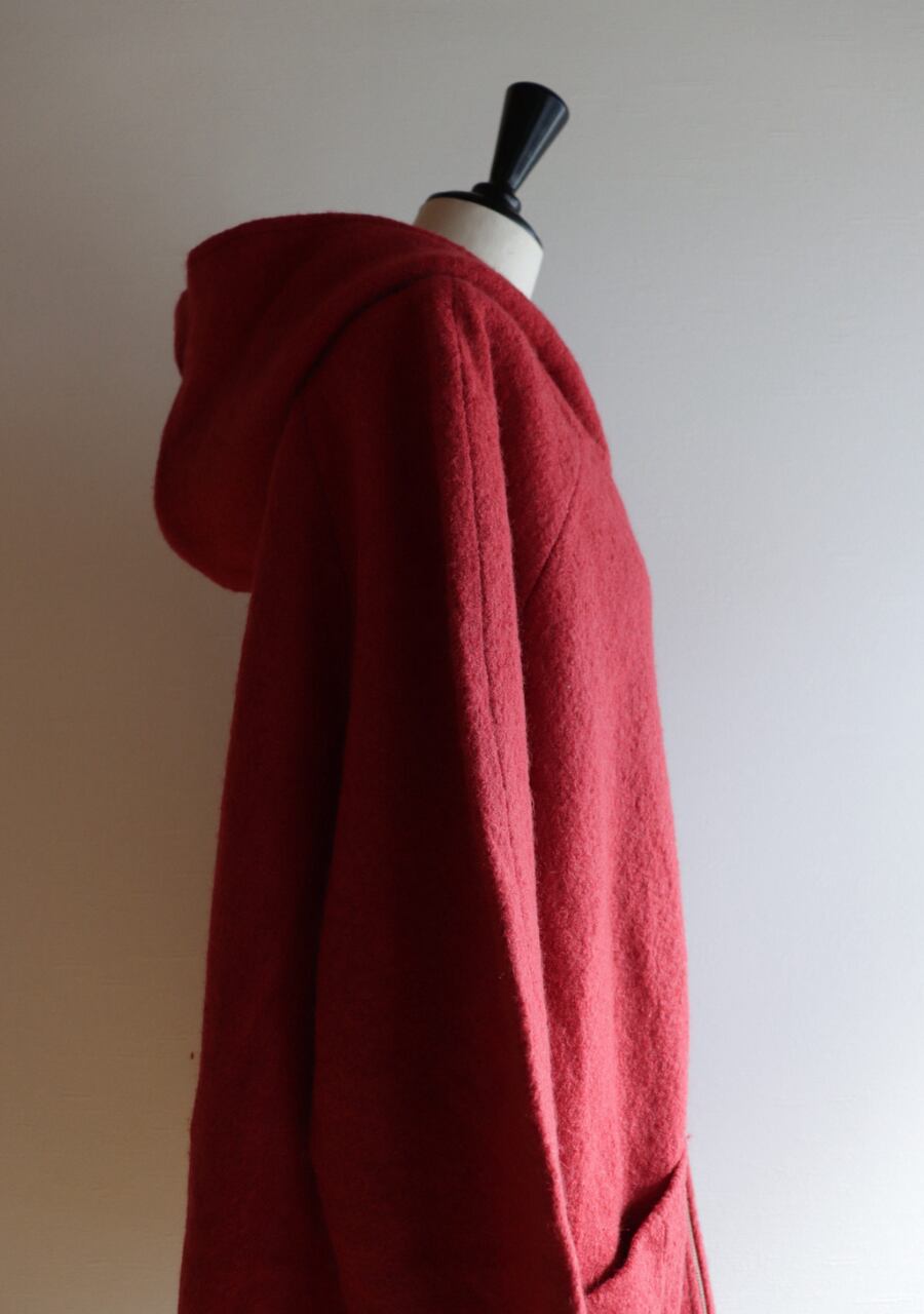 red hooded wool coat