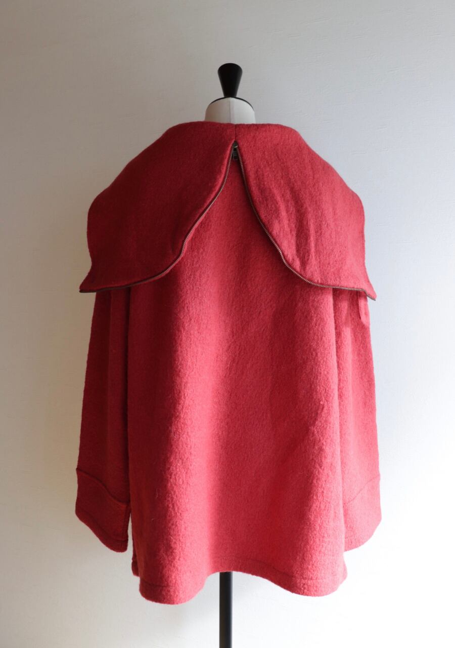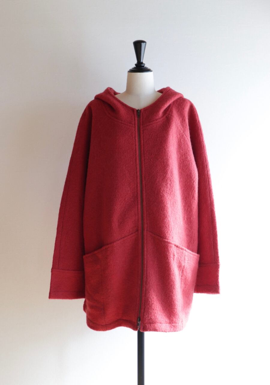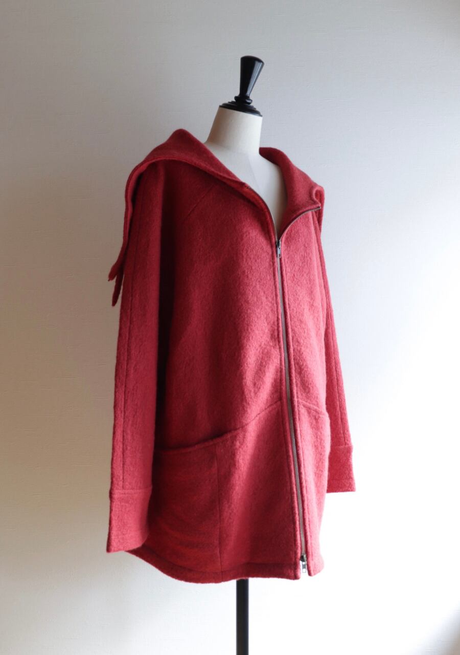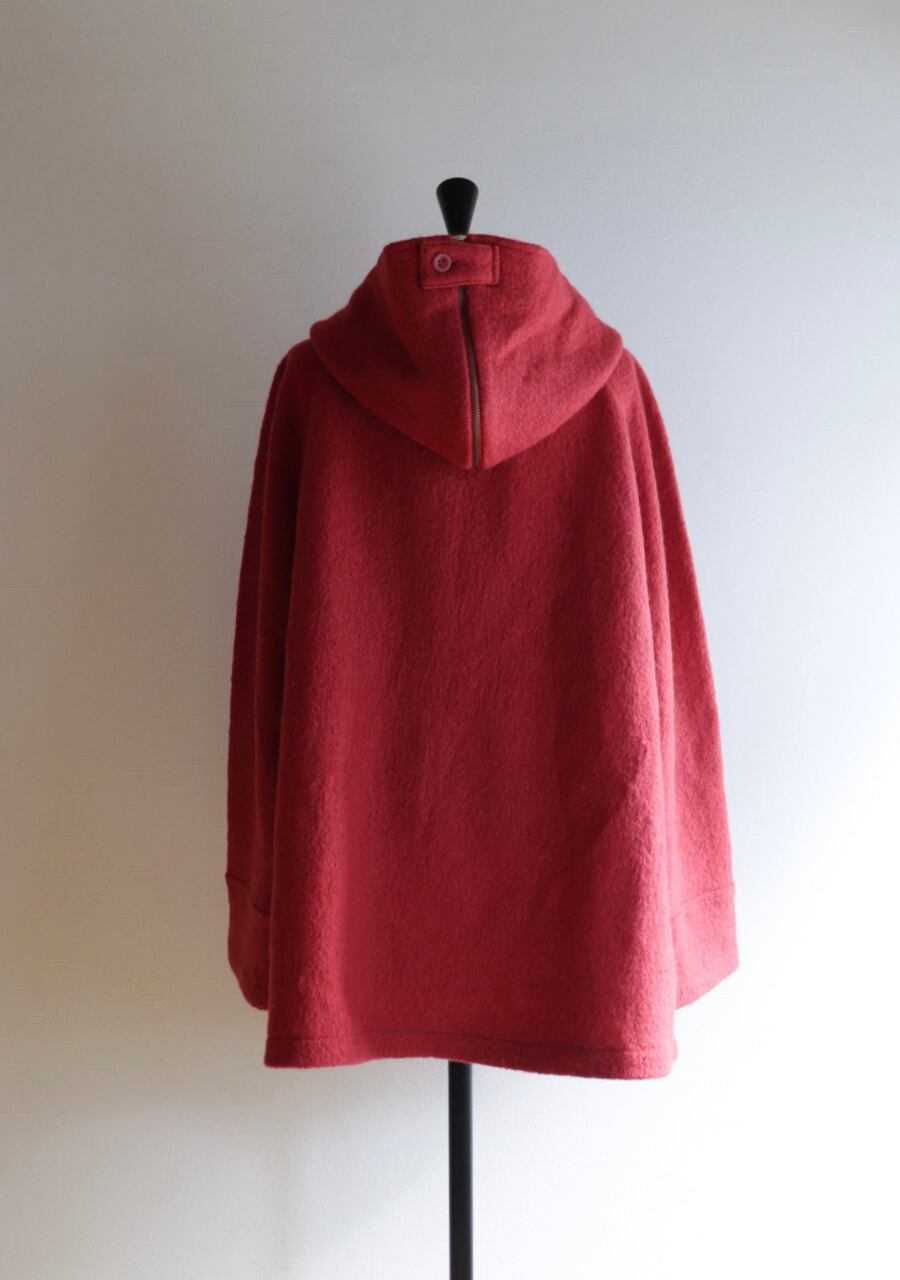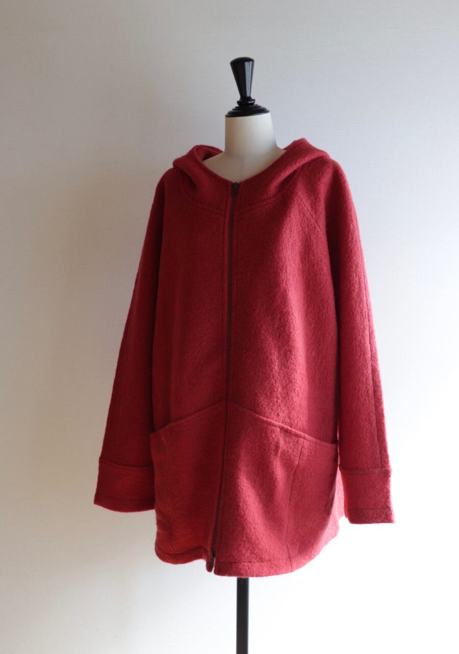 red hooded wool coat
