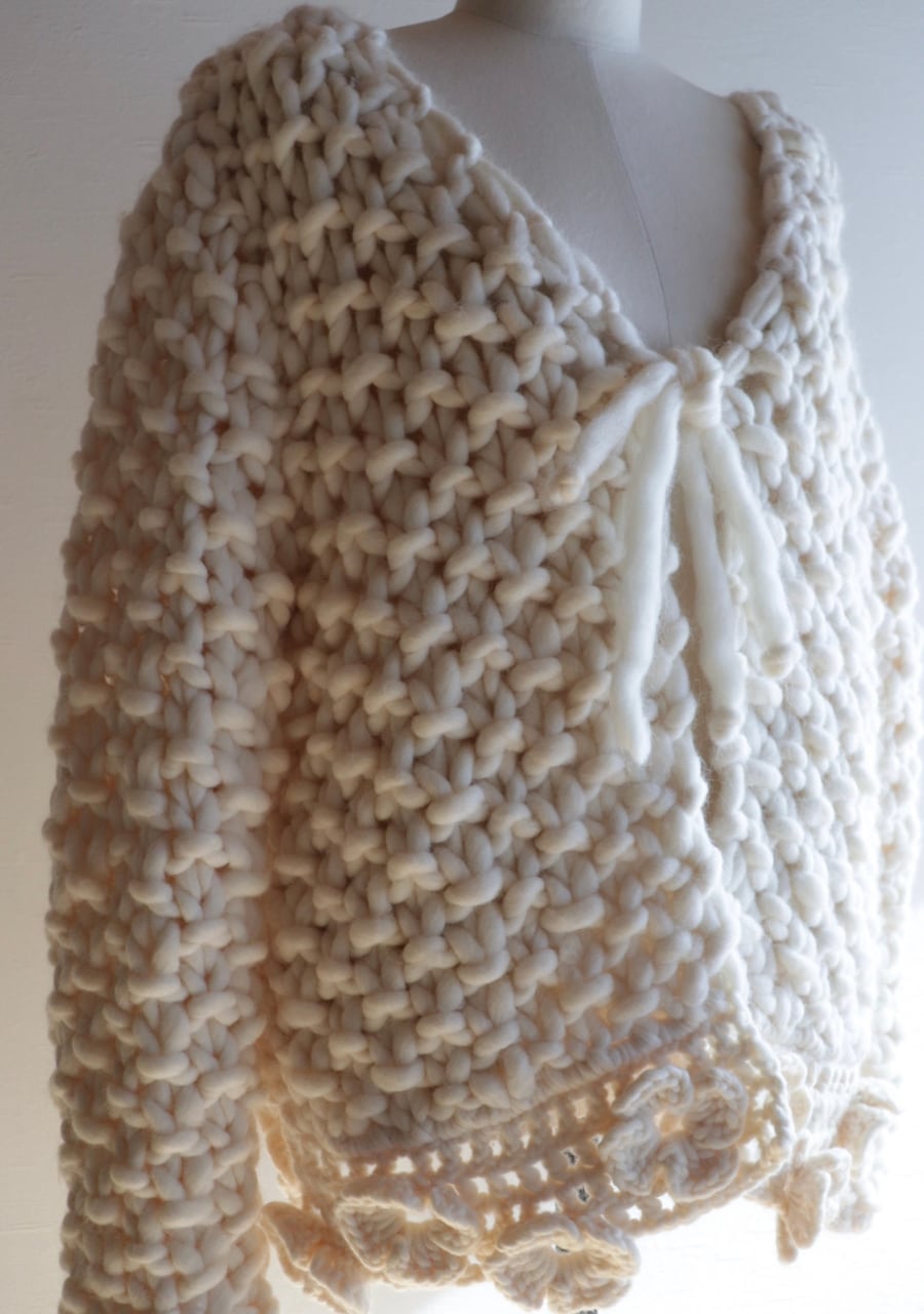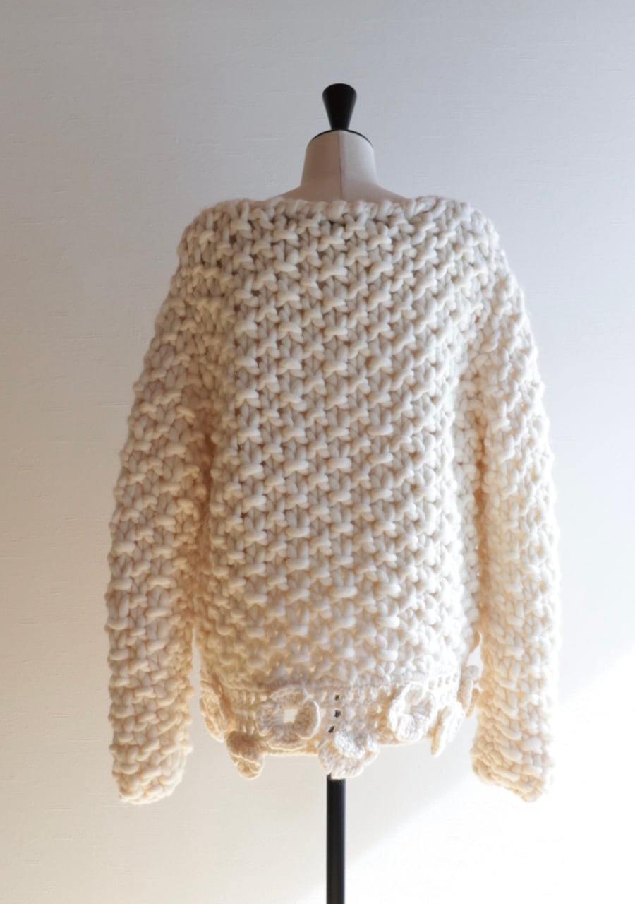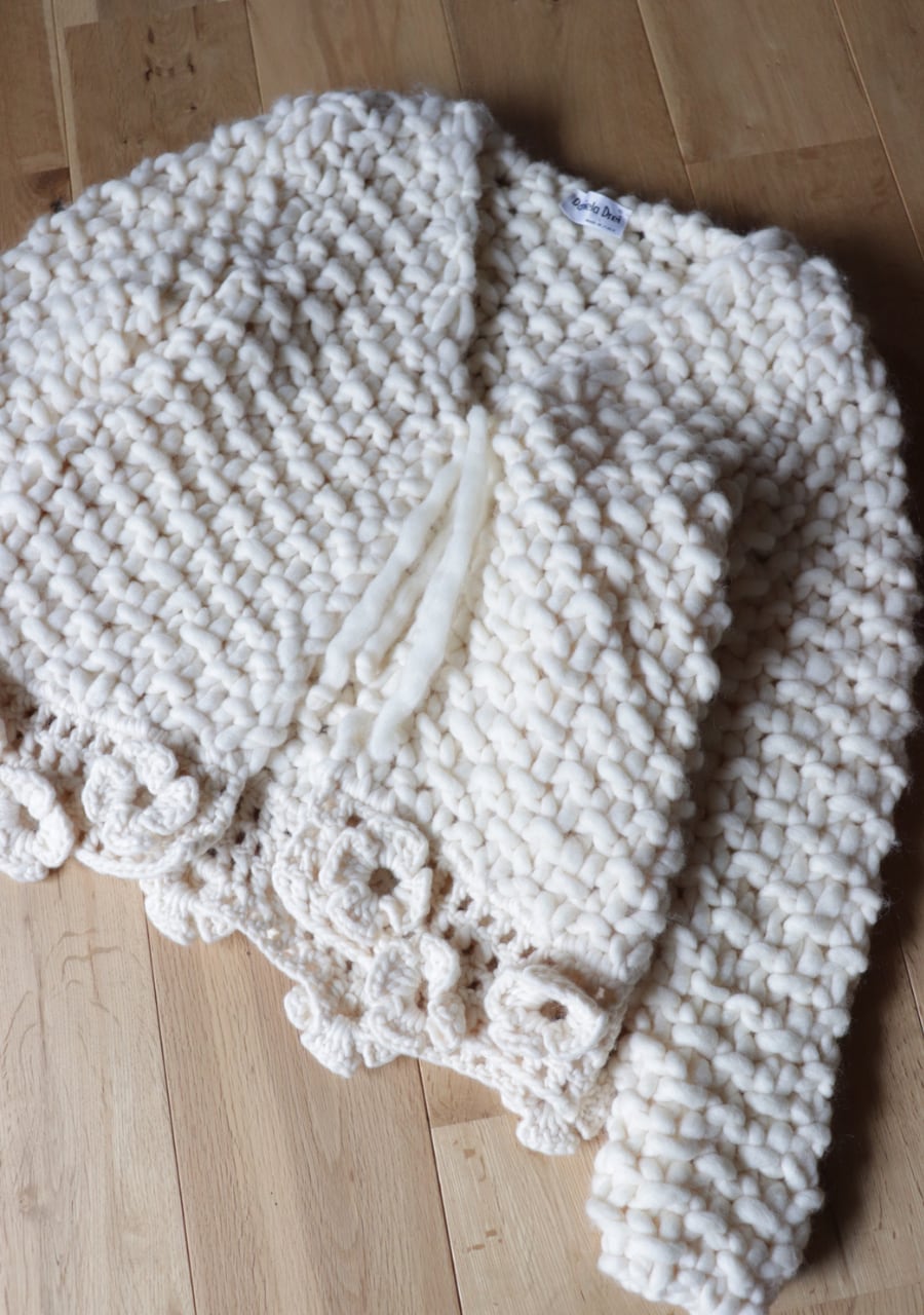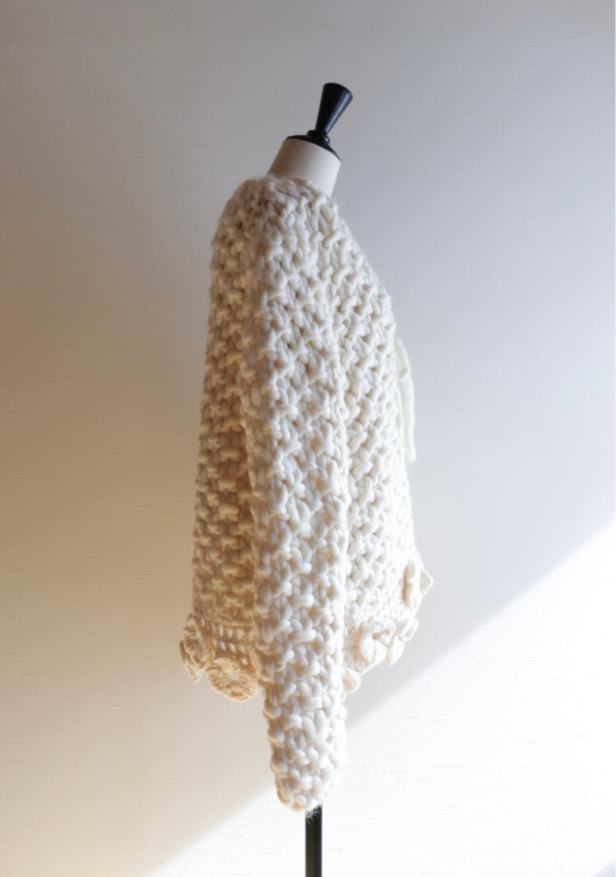 crocheted flower chunky knit cardigan made in ITALY