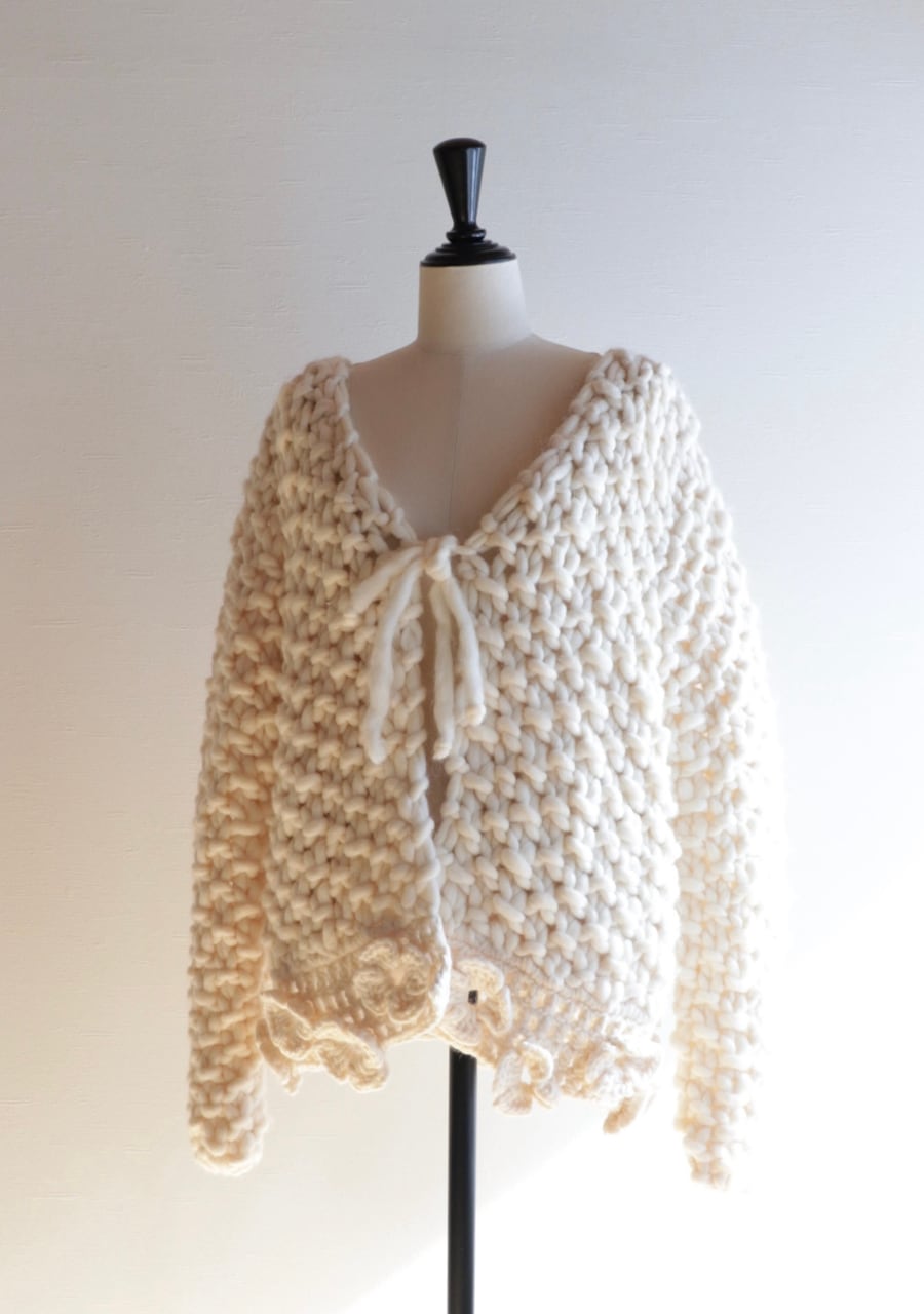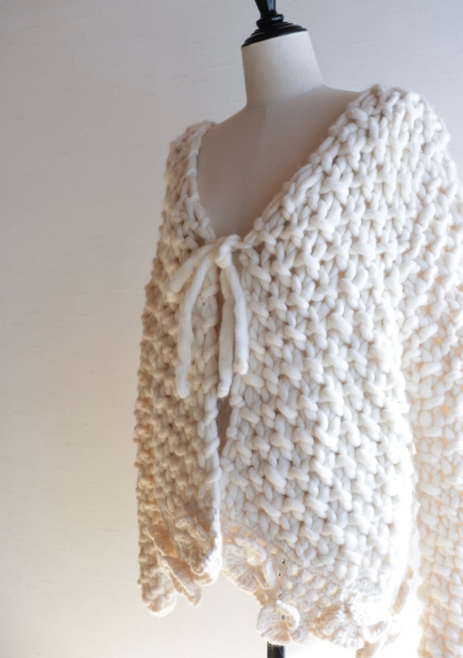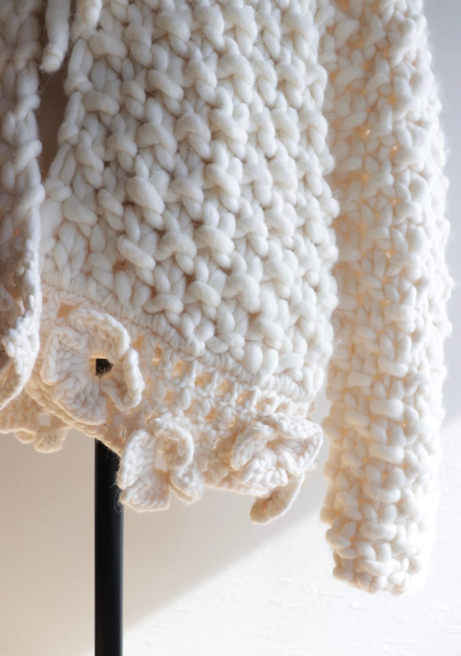 crocheted flower chunky knit cardigan made in ITALY