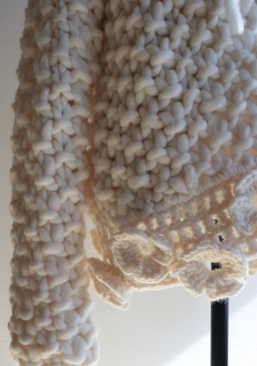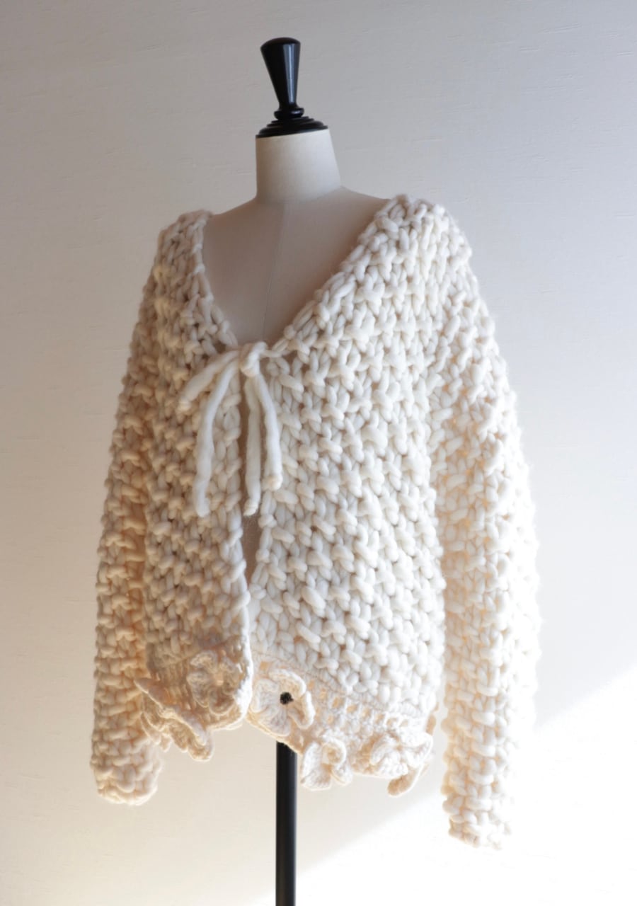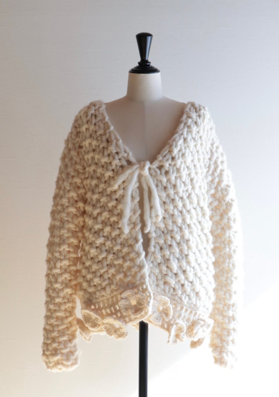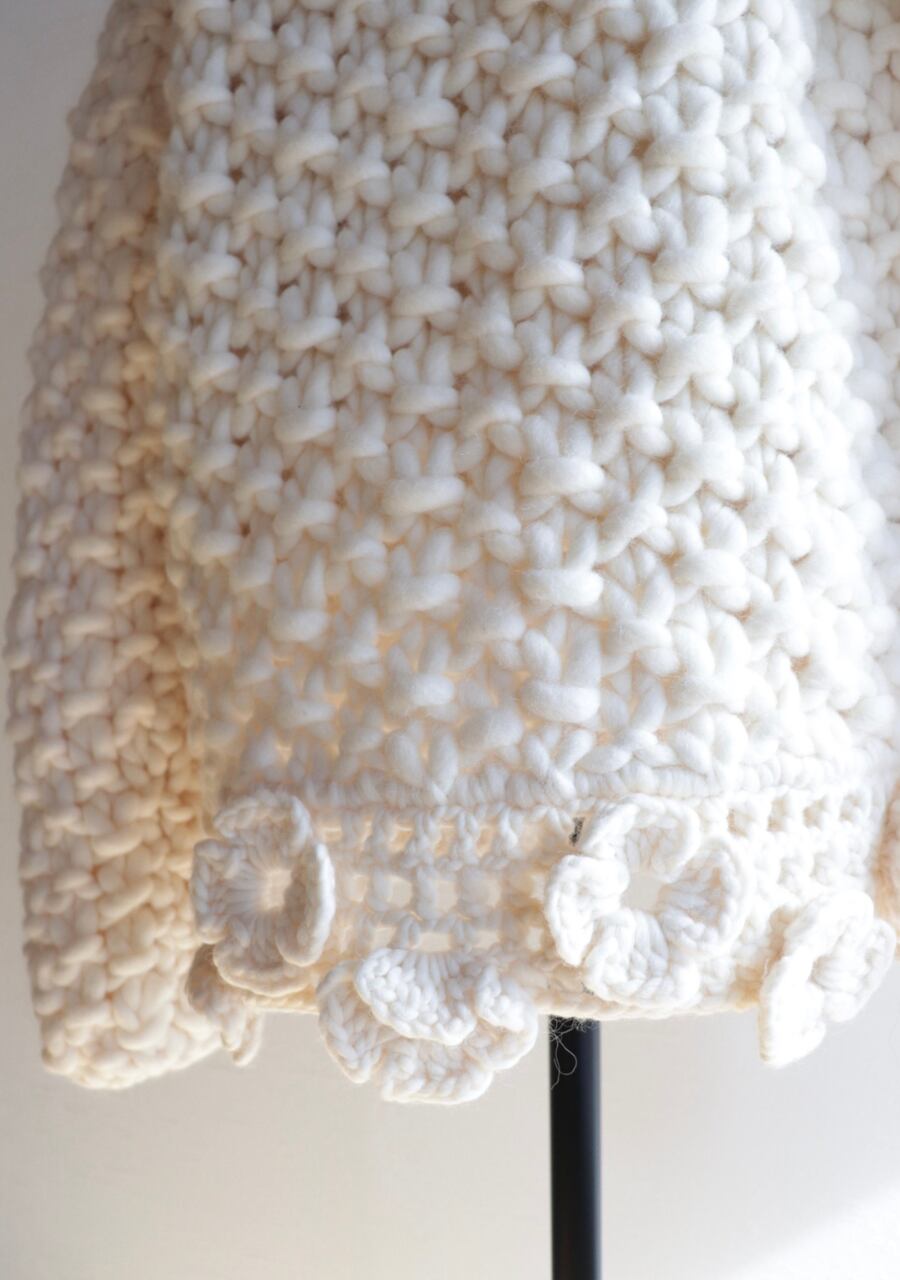 crocheted flower chunky knit cardigan made in ITALY