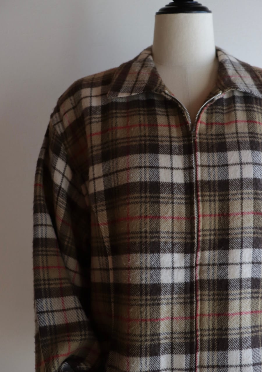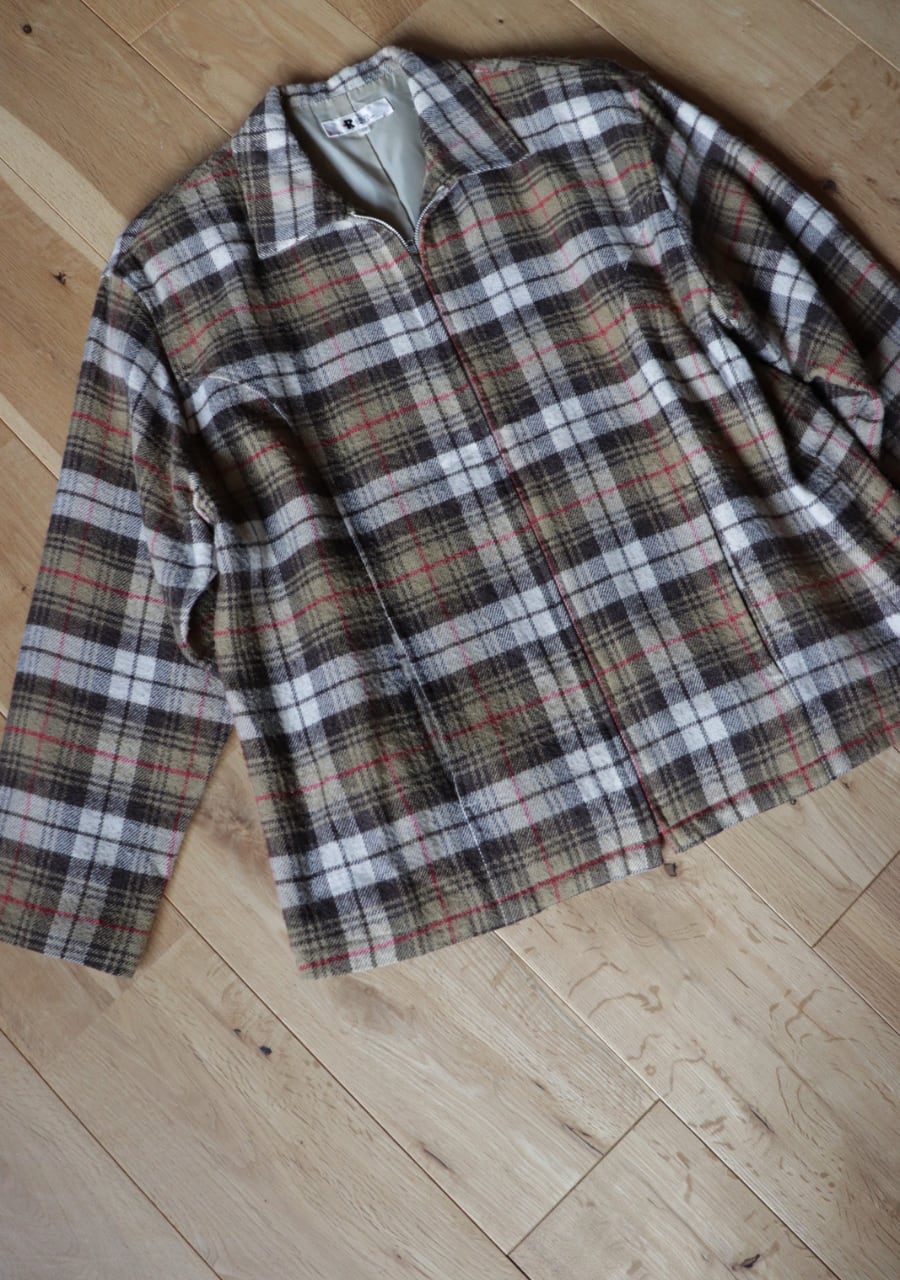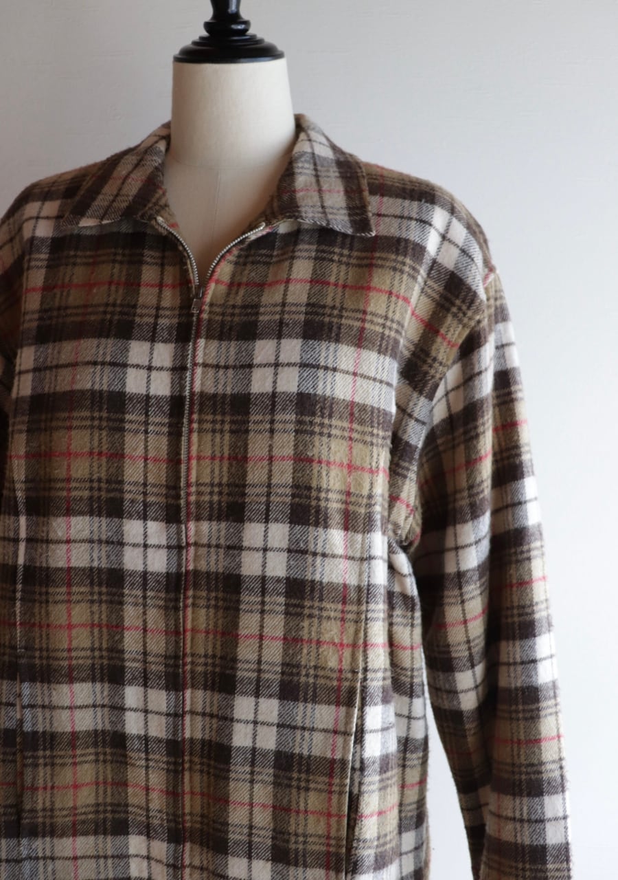 brown check pattern zip blouson