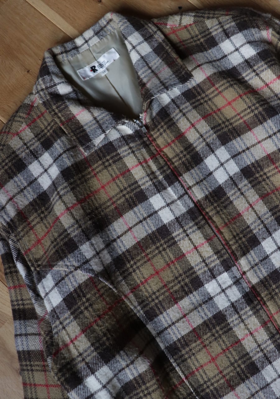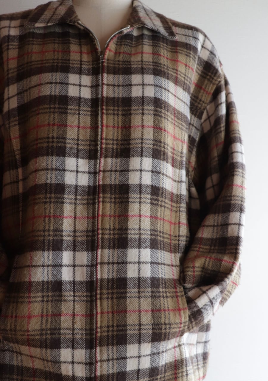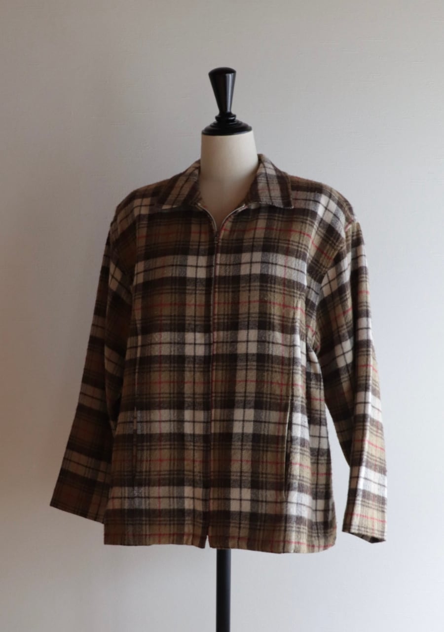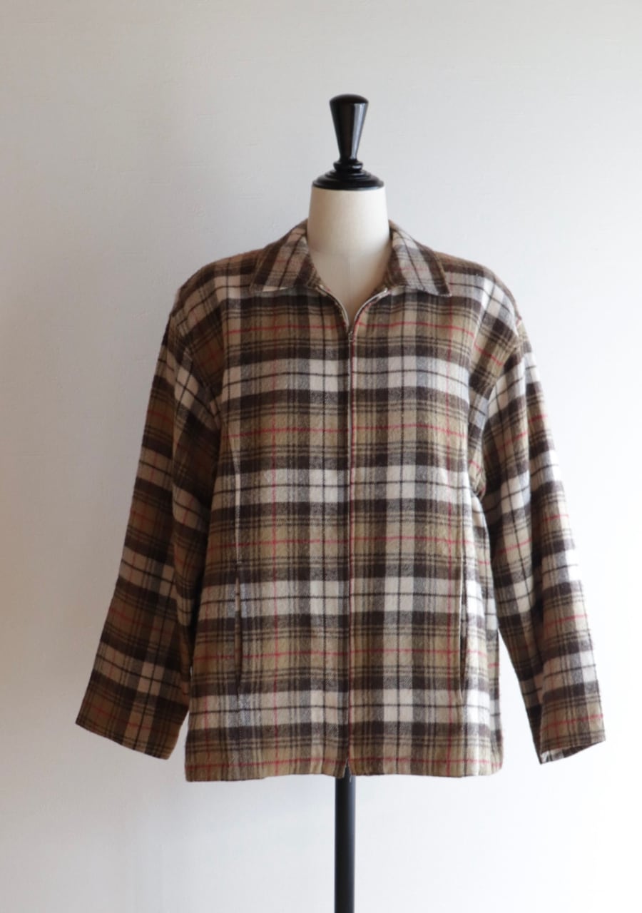 brown check pattern zip blouson