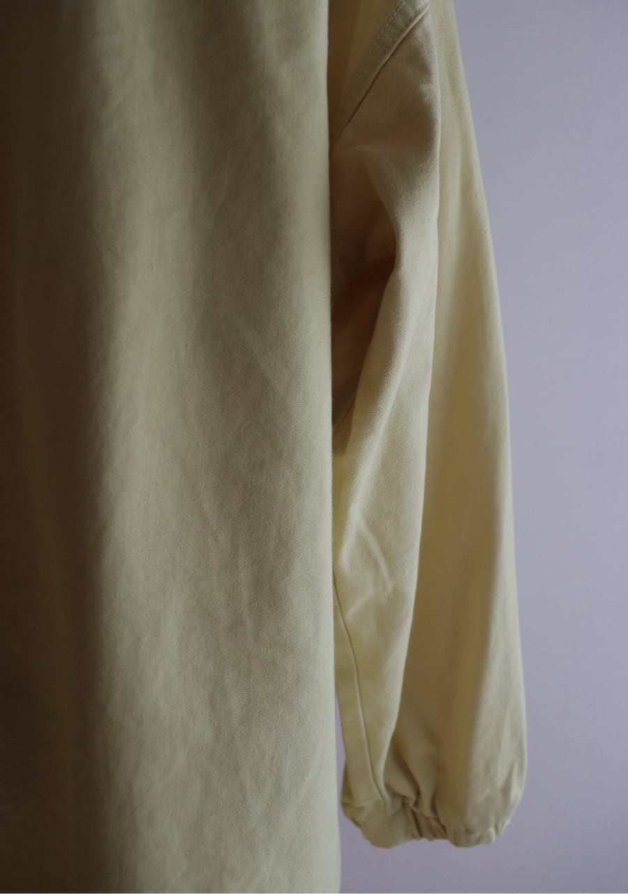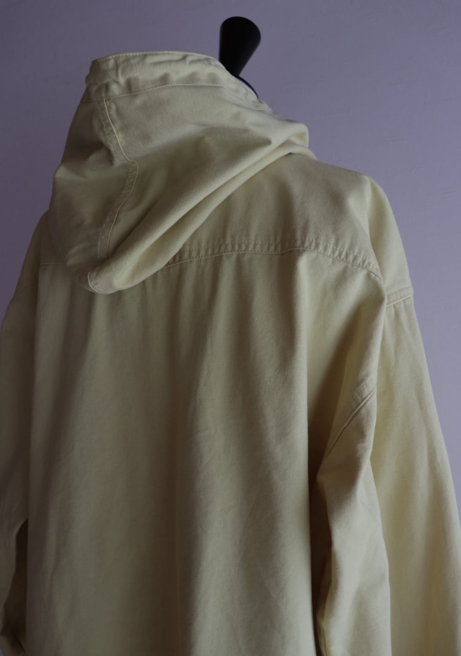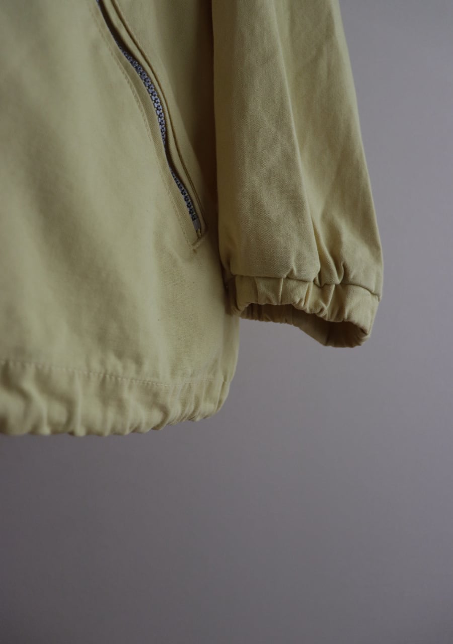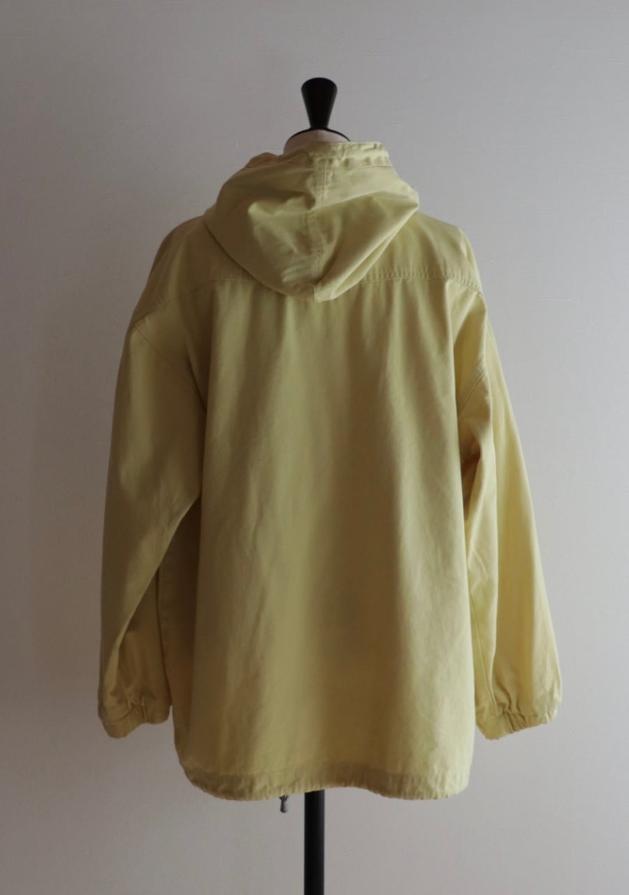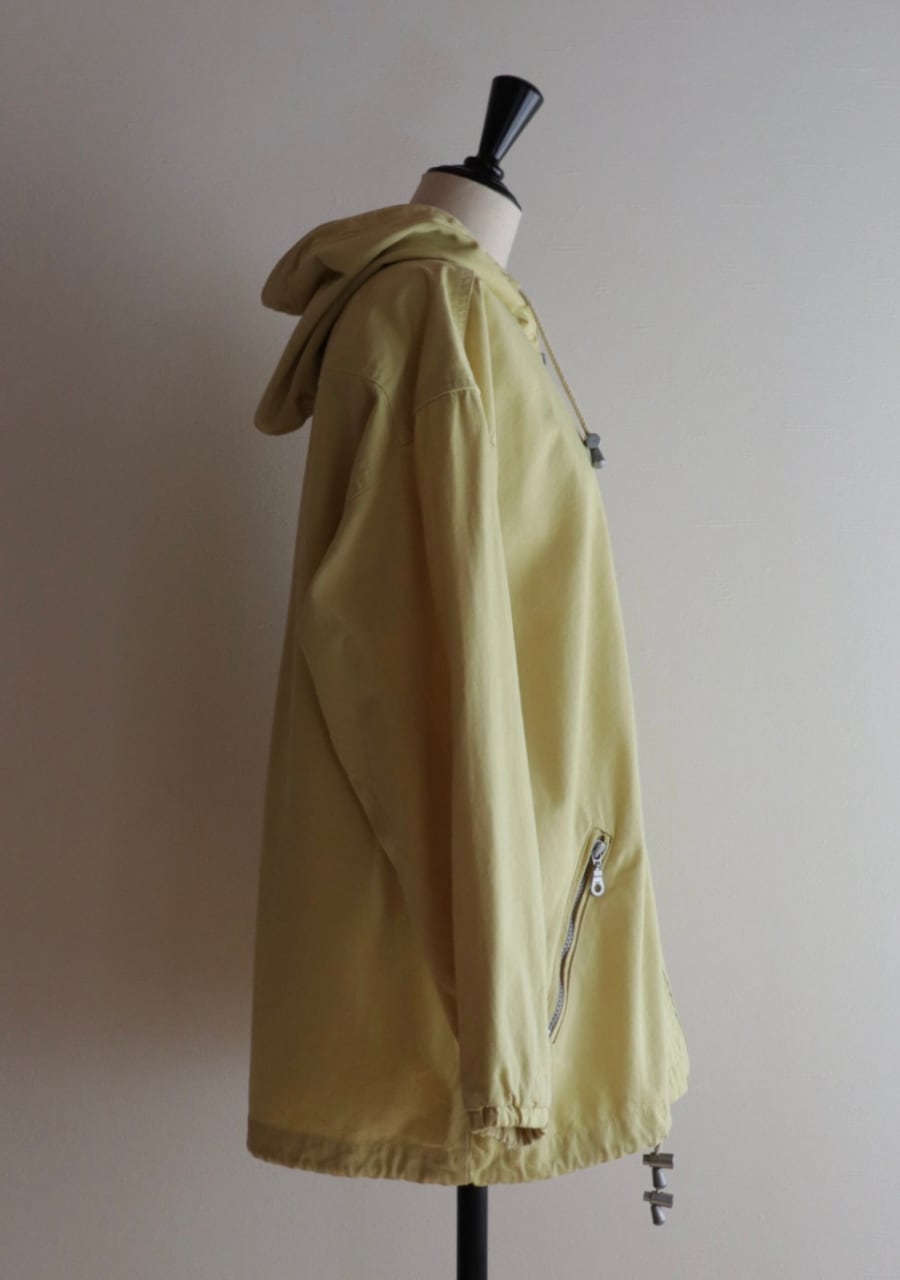 爽やかなレモンイエローとシルバーのジップが可愛い。生地はやや薄手で柔らかいがしっかとした生地。身幅も良くインナーにスウェットやニットの上からも羽織れます。またコートのインナーとしても良し!フードとカラーがアクセントになるアイテムでファッション性もよく機能性も良し。春まで活躍してくれるアイテムです。