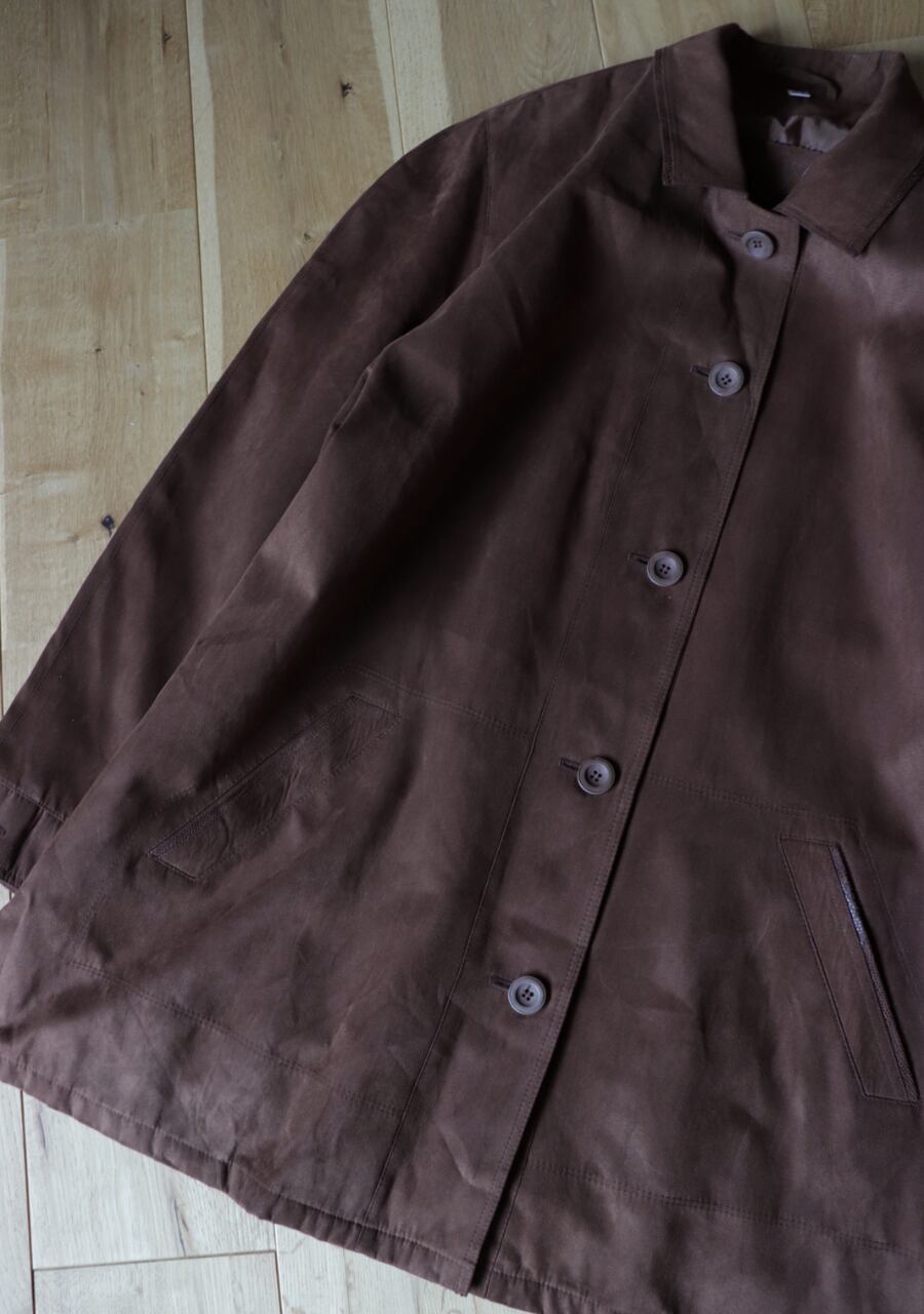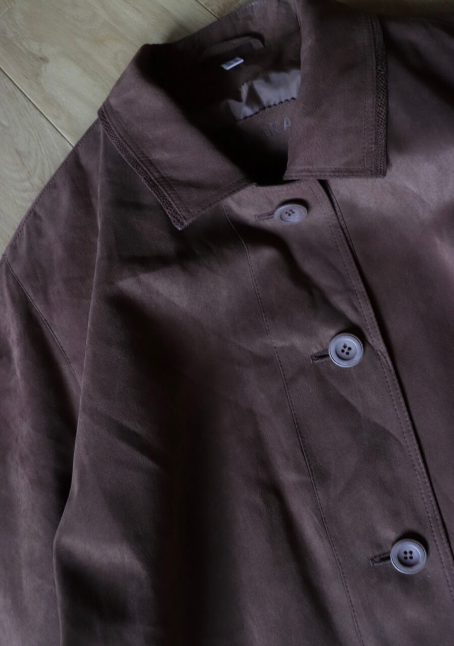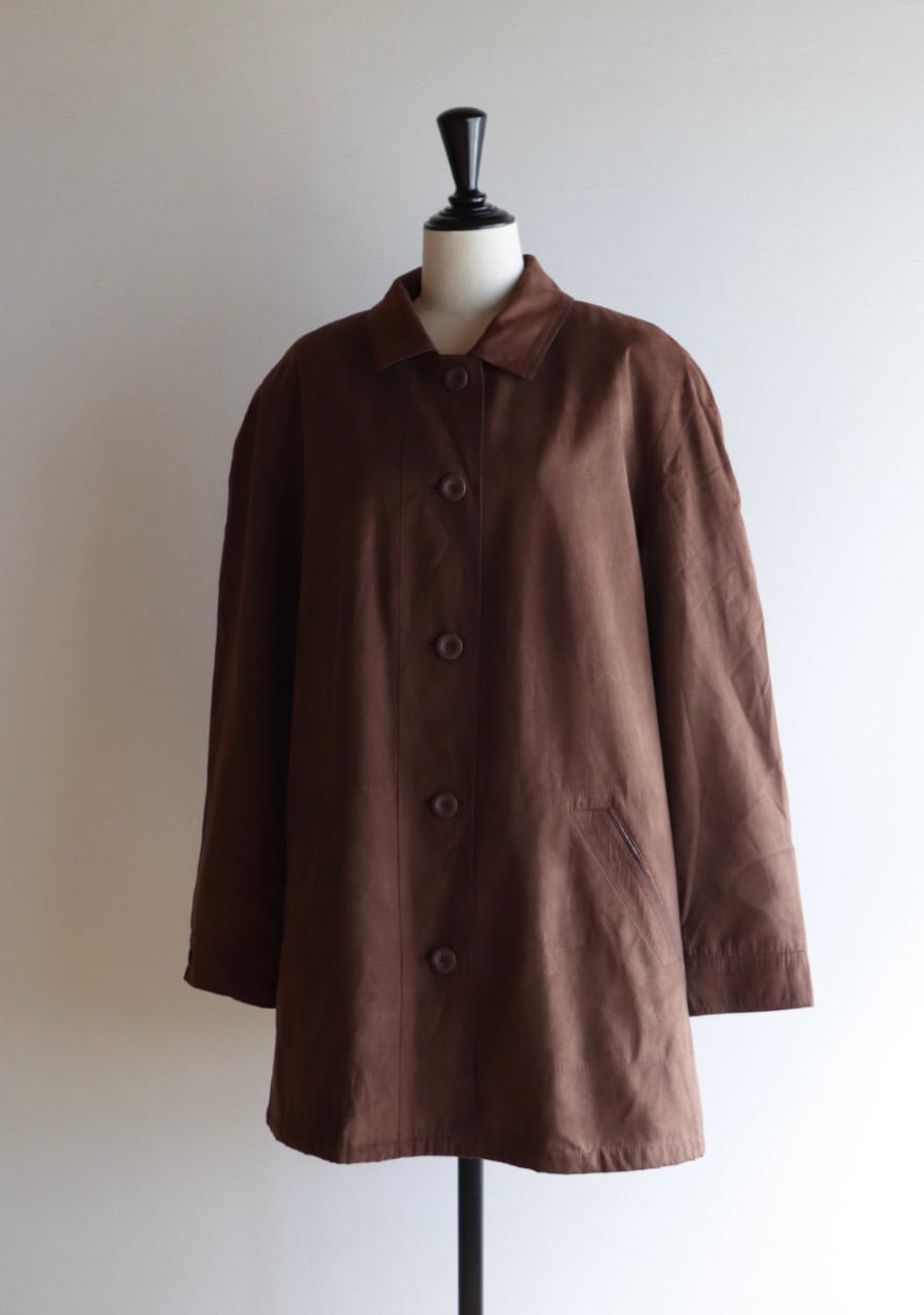 軽く柔らかくしなやかなスウェード調に加工されたポリエステル素材のコート。その素材の質感はまるで本物のスウェードそのもの。扱いやすいのもうれしい。軽くゆったりと羽織れるのでこの季節に一枚羽織れる優れたアイテムに。今季のトレンドをおさえたスタイリングが可能で機能性もありシンプルなデザインで活躍できるアイテム。色味も優しい印象のブラウンで上品にカジュアルにも。