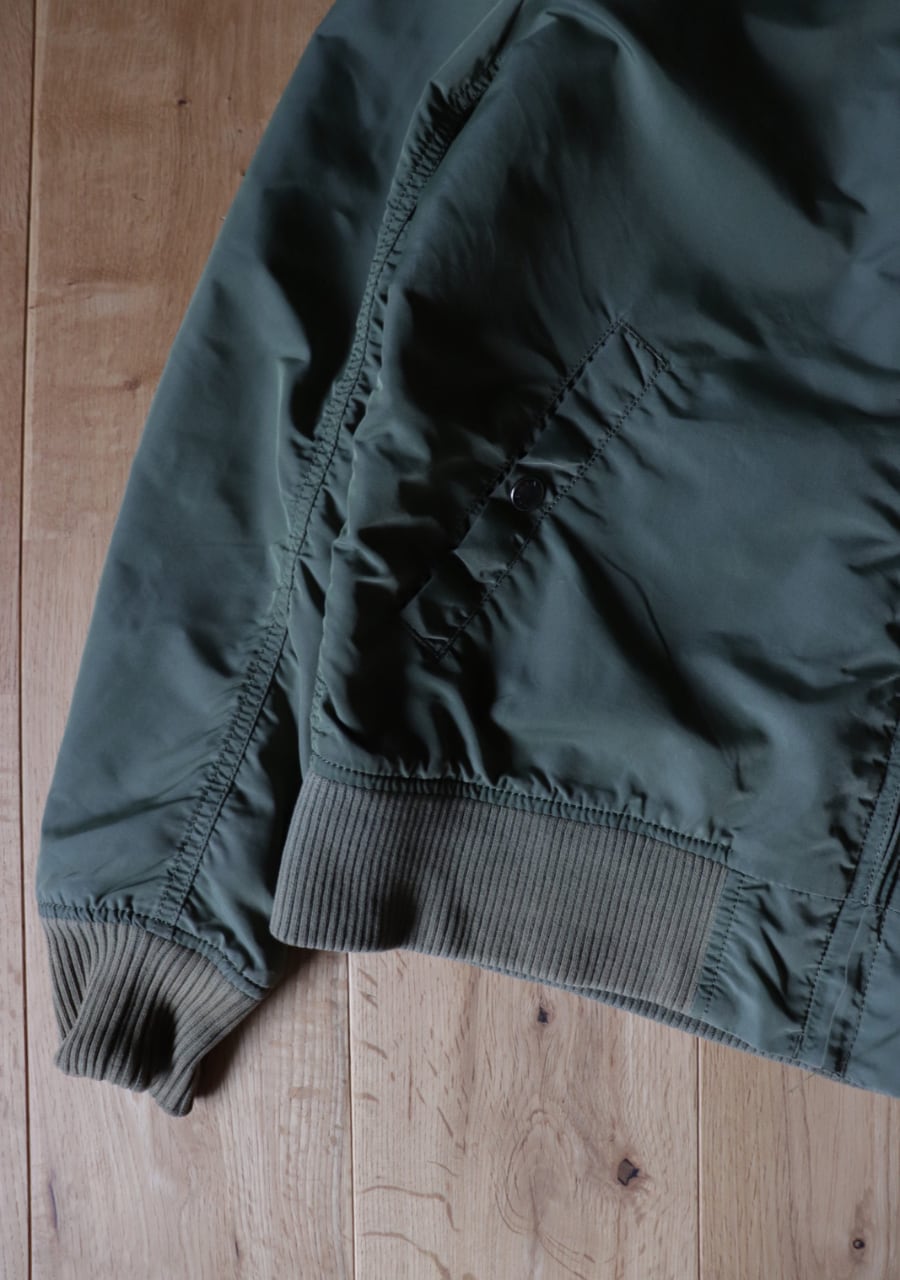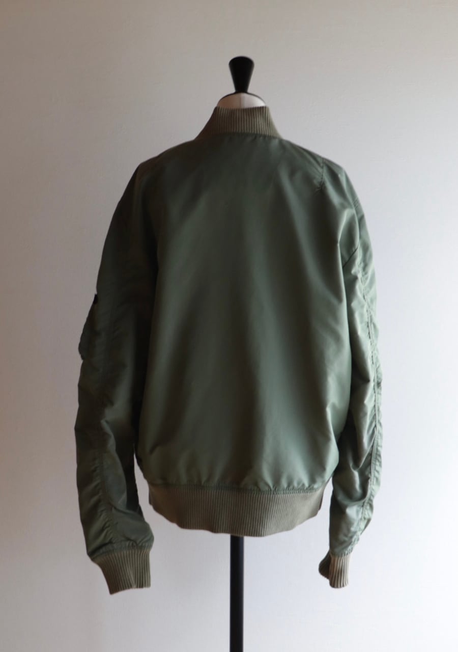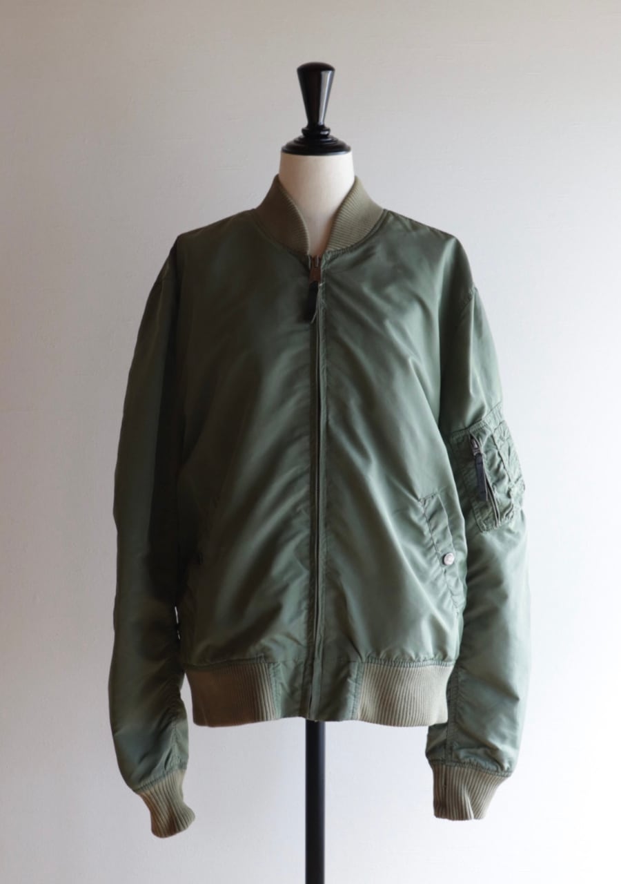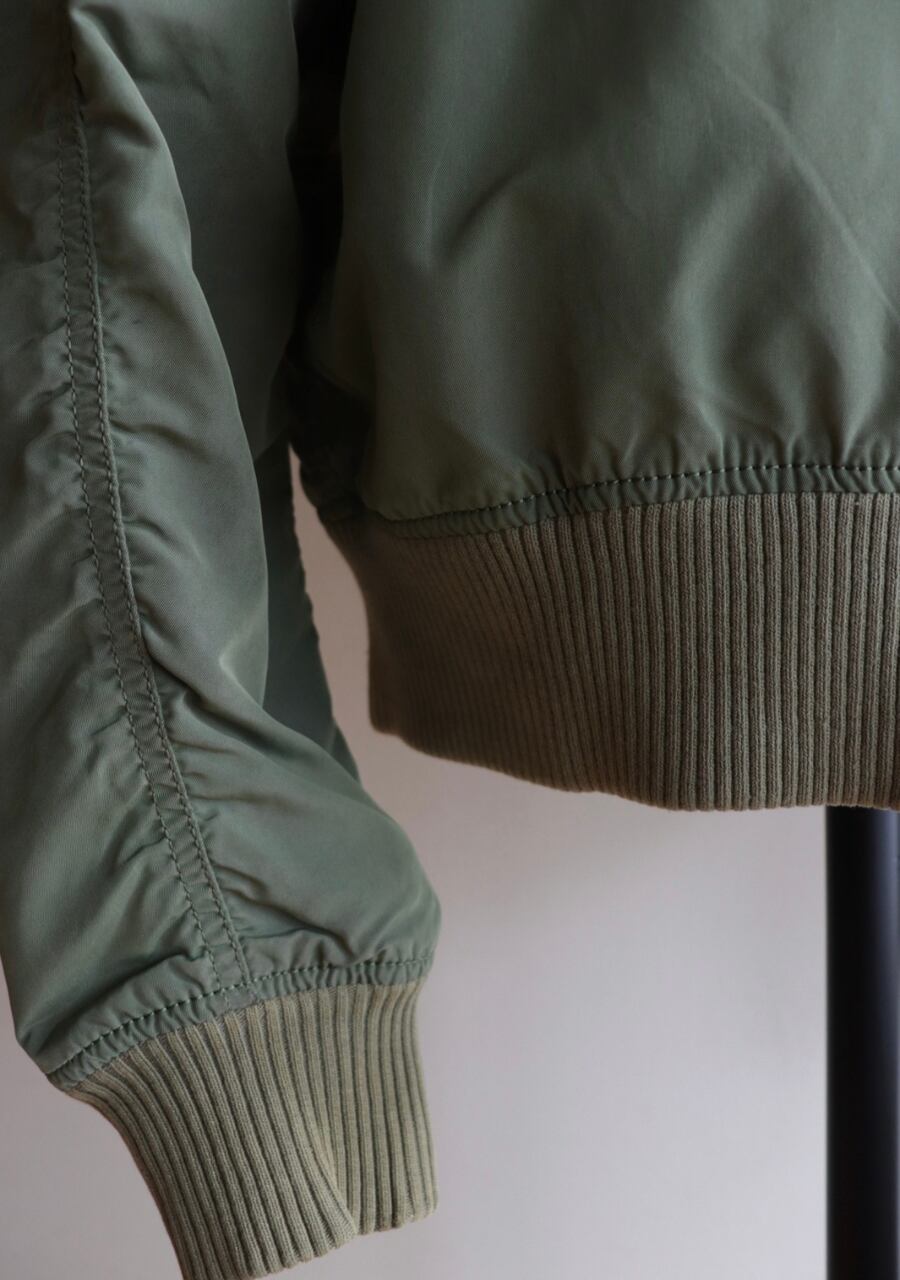 やや色味が優しく雰囲気抜群のAlpha Industries MA-1 。民間用中綿無しのタイプ。小さなキズや汚れ色あせが見られますが古着ならではの雰囲気があります。女性はややゆったり目に着用していただけるサイズ。機能性もあり季節の変わり目におしゃれを楽しんでいただける一着です。