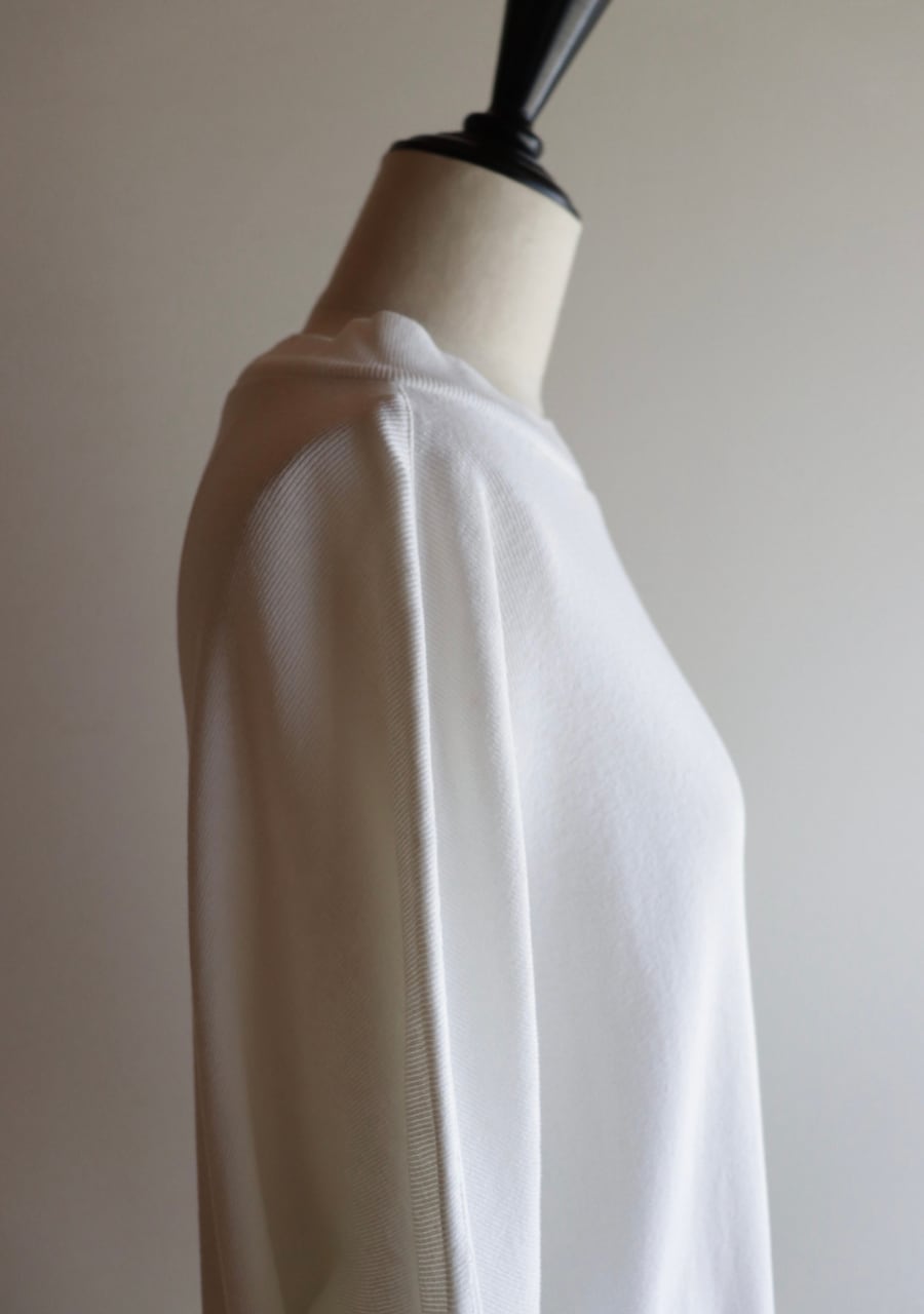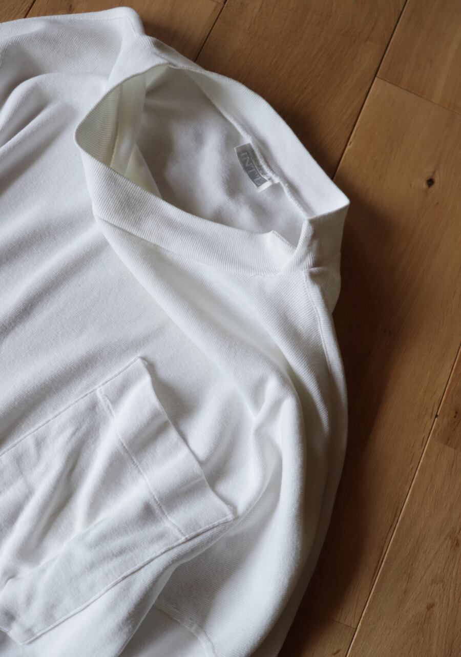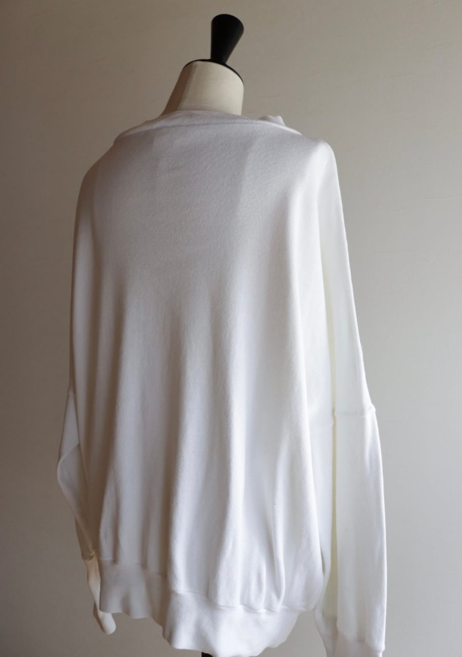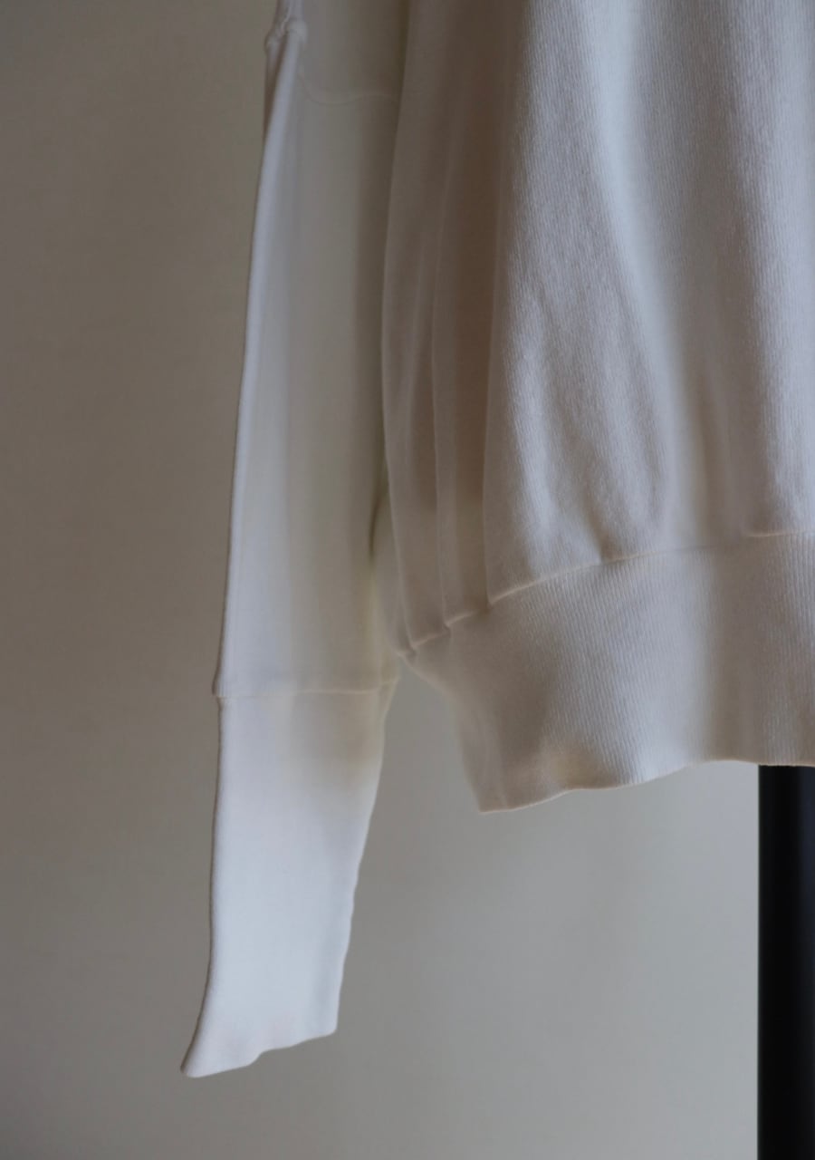 コットン素材のやや薄手の肌触りの良い生地。シンプルな中に首元は広めのボートネック、肩が大きく落ちて袖のリブが長め、フロントのポケットは大き目でいたるところのデザインが心掴まれるシャツ。こういうポイントがたまらなく合わせるボトムスも選ばず万能なアイテム。可愛いです。