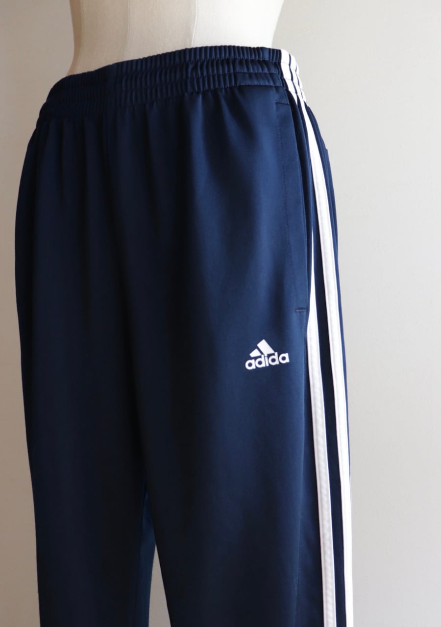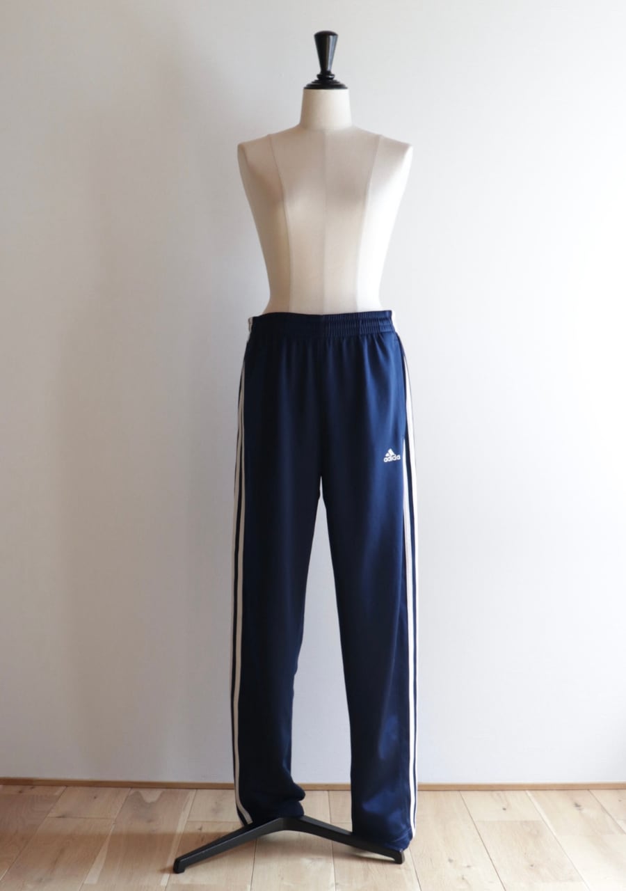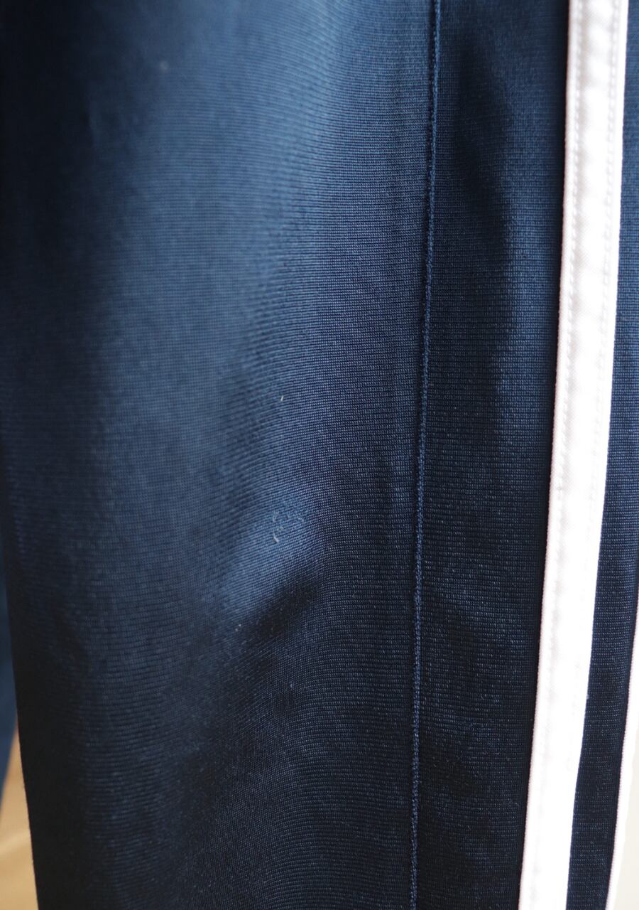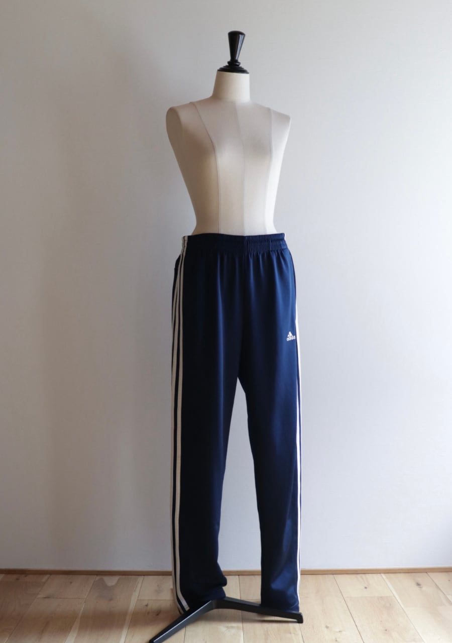 2018/04製造と比較的最近の物になります。使用感がありますがファッションに取り入れやすいネイビーカラーの人気の三本ライン。レイヤードしても良し。大人のスポーツミックスコーディネートを楽しんでいただけます。トラックパンツだけあって動きやすさ抜群です。