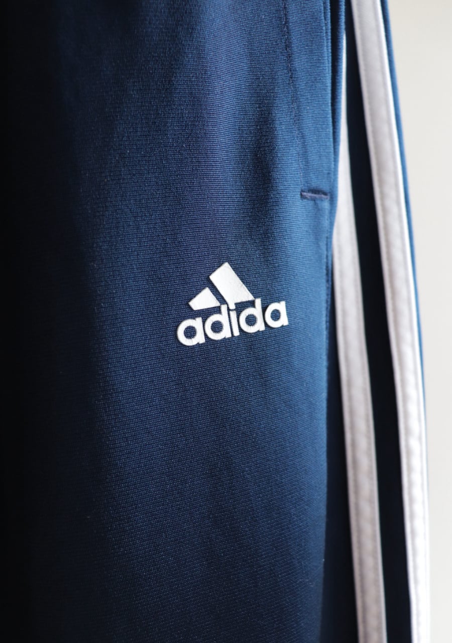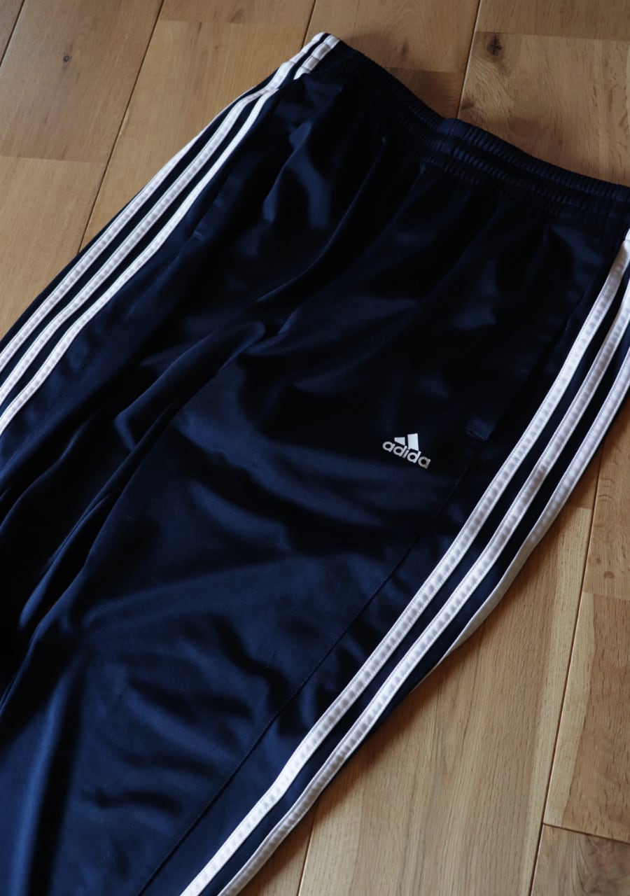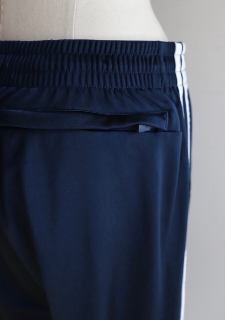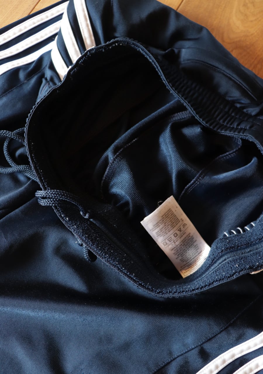 2018/04製造と比較的最近の物になります。使用感がありますがファッションに取り入れやすいネイビーカラーの人気の三本ライン。レイヤードしても良し。大人のスポーツミックスコーディネートを楽しんでいただけます。トラックパンツだけあって動きやすさ抜群です。