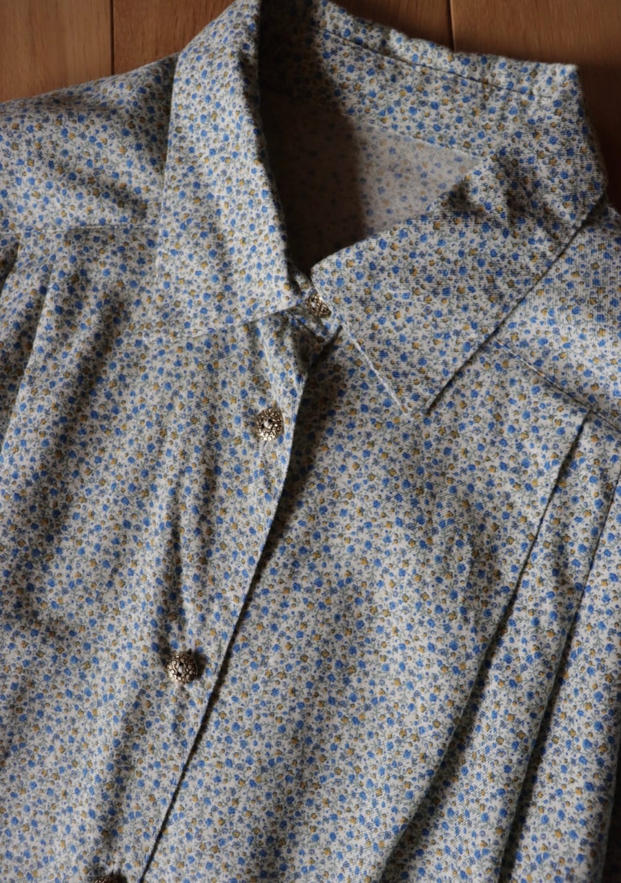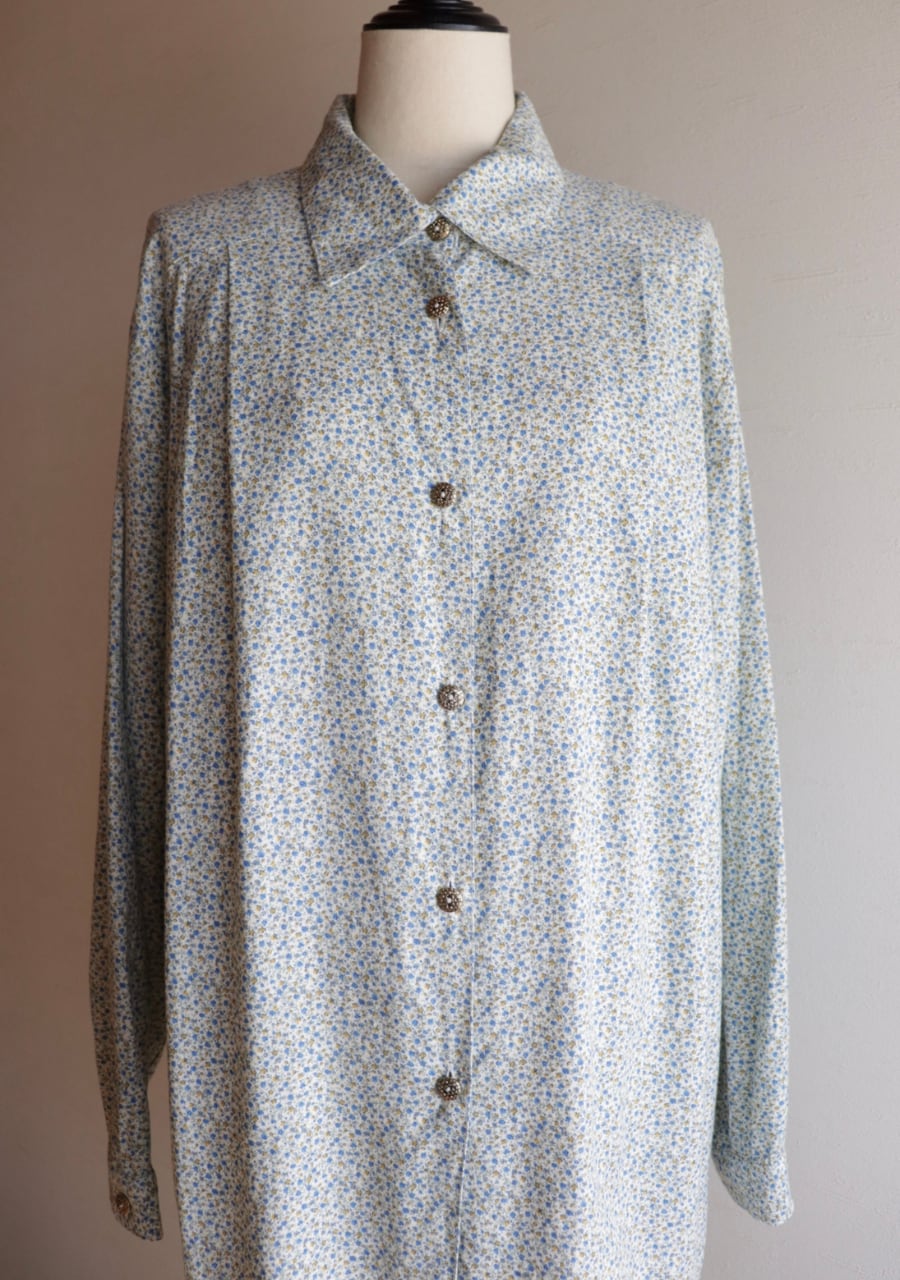 blue x yellow small floral pattern shirt