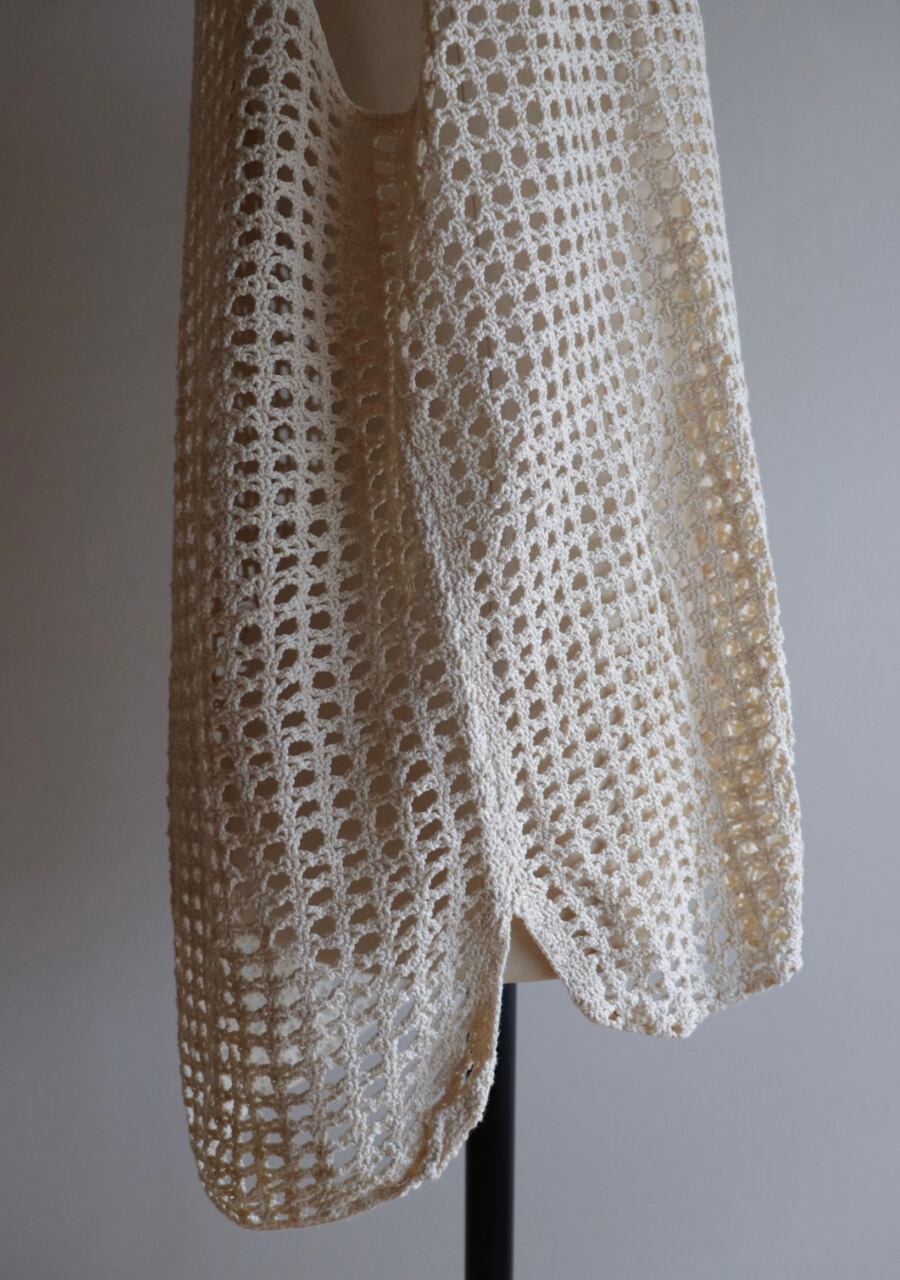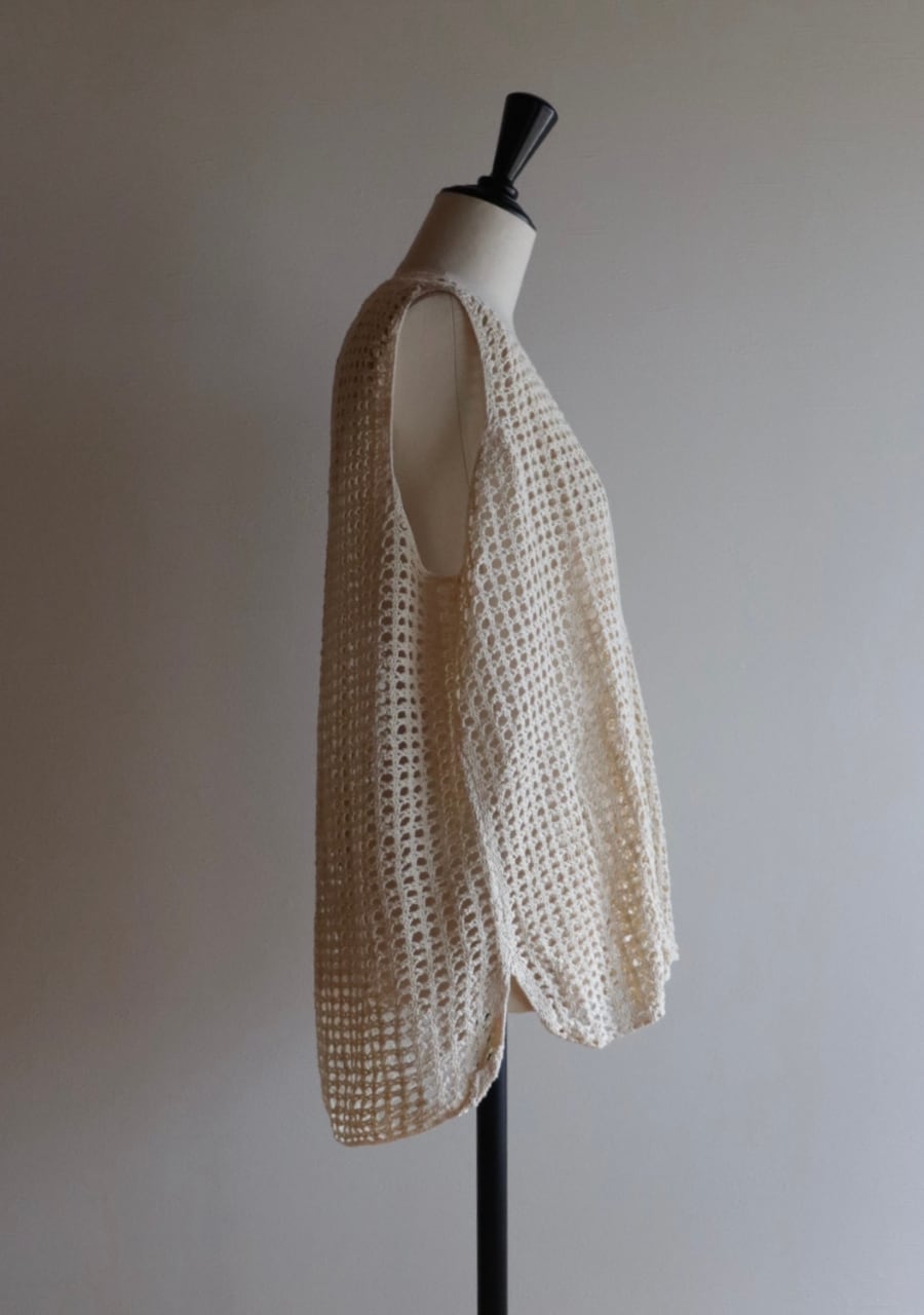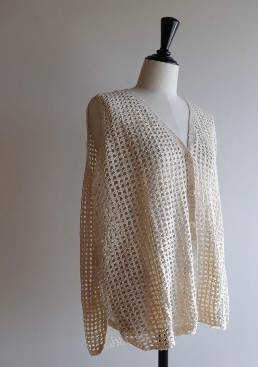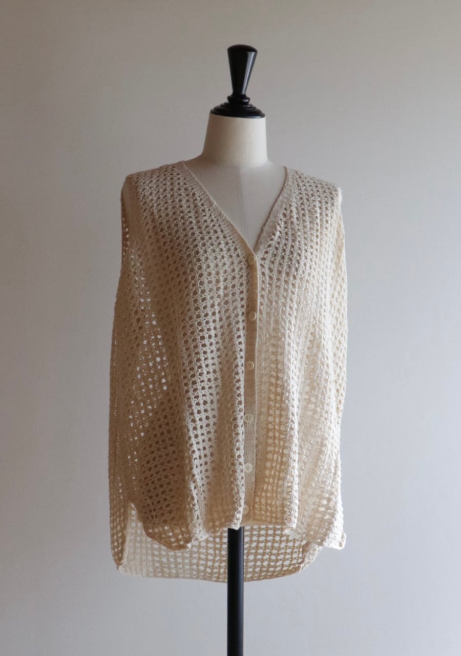 シンプルな編みとシルエットが可愛いベストカーディガン。透け感が涼し気で春夏のコーディネートのポイントとして取り入れていただけるアイテム。シンプルながら身幅のシルエットや裾の丸みが可愛さをプラスしたアイテムでカジュアルにもキレイ目にも女性らしさをプラスしてくれます。シアーロングTシャツとの相性も良く透け感アイテムで女性らしいスタイリングも良し、デニムやスラックスなどのメンズライクアイテムにも甘さをプラスする要因としても取り入れて楽しんでいただけます。おすすめの一着です。