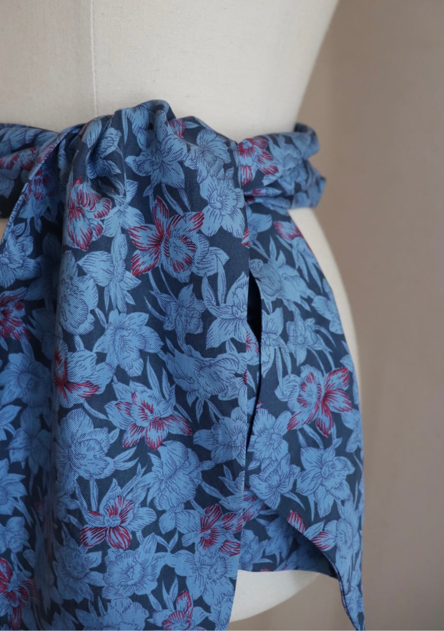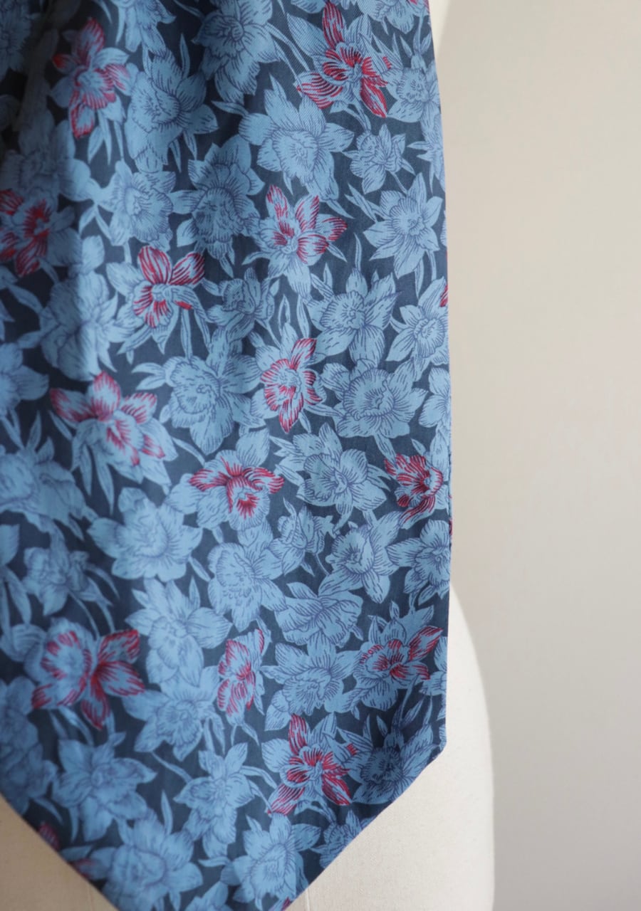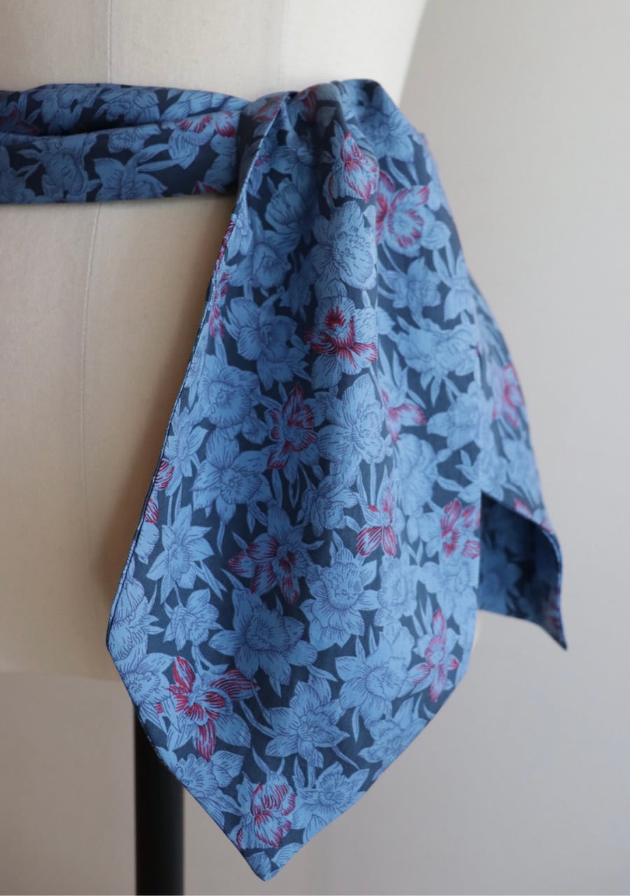 花柄がとても可愛く華やかなスカーフ。ネクタイのように首元に巻いていただけるだけでなく、腰元にウエストマークしたりサイドのベルトフープに通して垂らしてみたり、頭に巻いたりまとめ髪に巻いてみたりバックにもいろいろな使い方でポイントとして楽しんでいただけるアイテム。。取り入れるだけでとても華やかでおしゃれです。