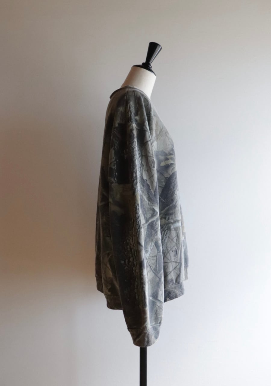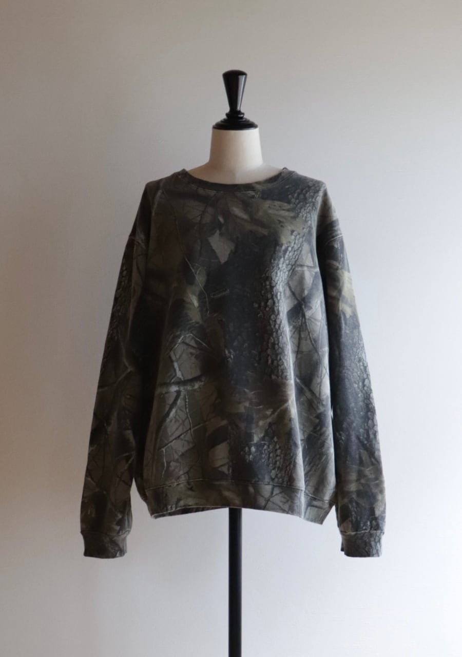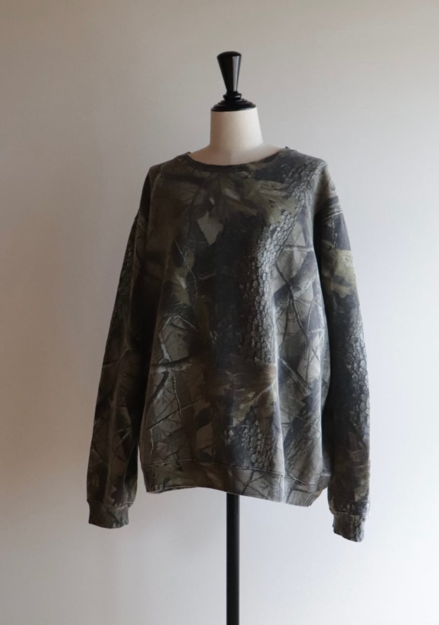 やや薄手の生地。首元の開き具合が絶妙で女性らしくカッコよく着用できるリアルツリーカモのスウェット。サイズ感も良く程よく丸みを帯び抜け感あるスタイリングが可能。ダークな色味も良く意外にもシーズンレスで使えるアイテム。使用感はあるが状態も良く大変おすすめ。おしゃれな一着です。