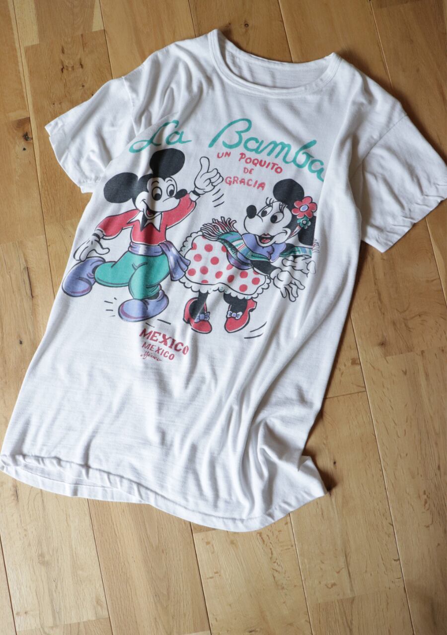 ミッキーの顔やタッチが特徴的な大変珍しいアイテム。観光お土産用としてのTシャツでとても人気のあるアイテム。色使いも可愛くてビックサイズのキュートなアイテムです。