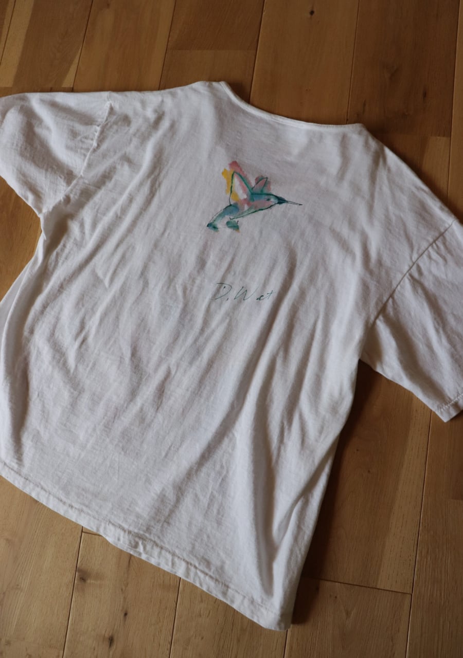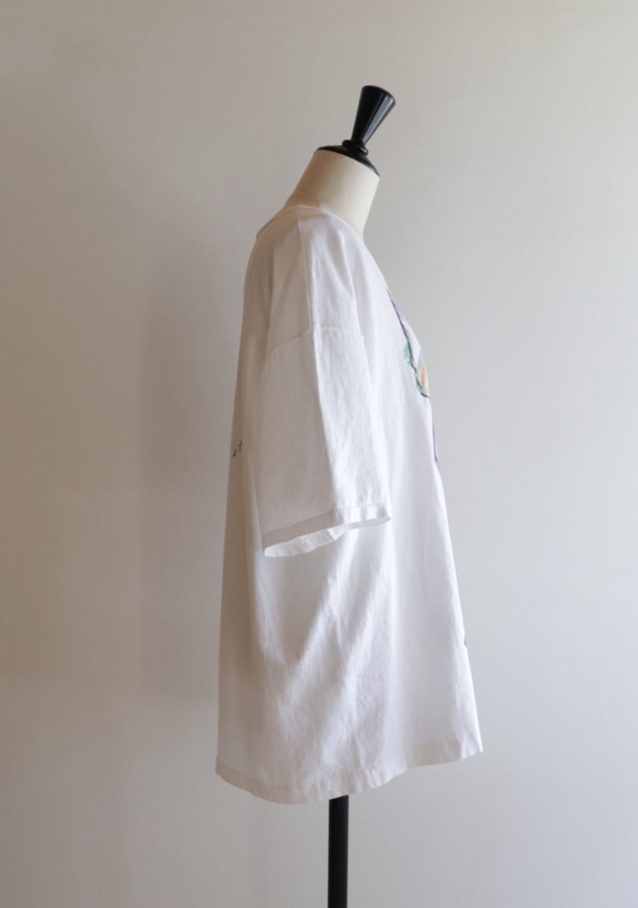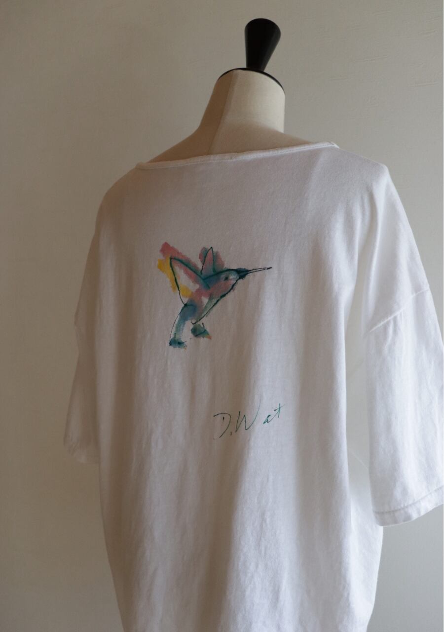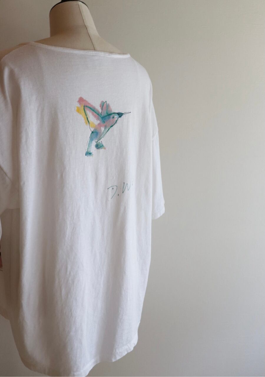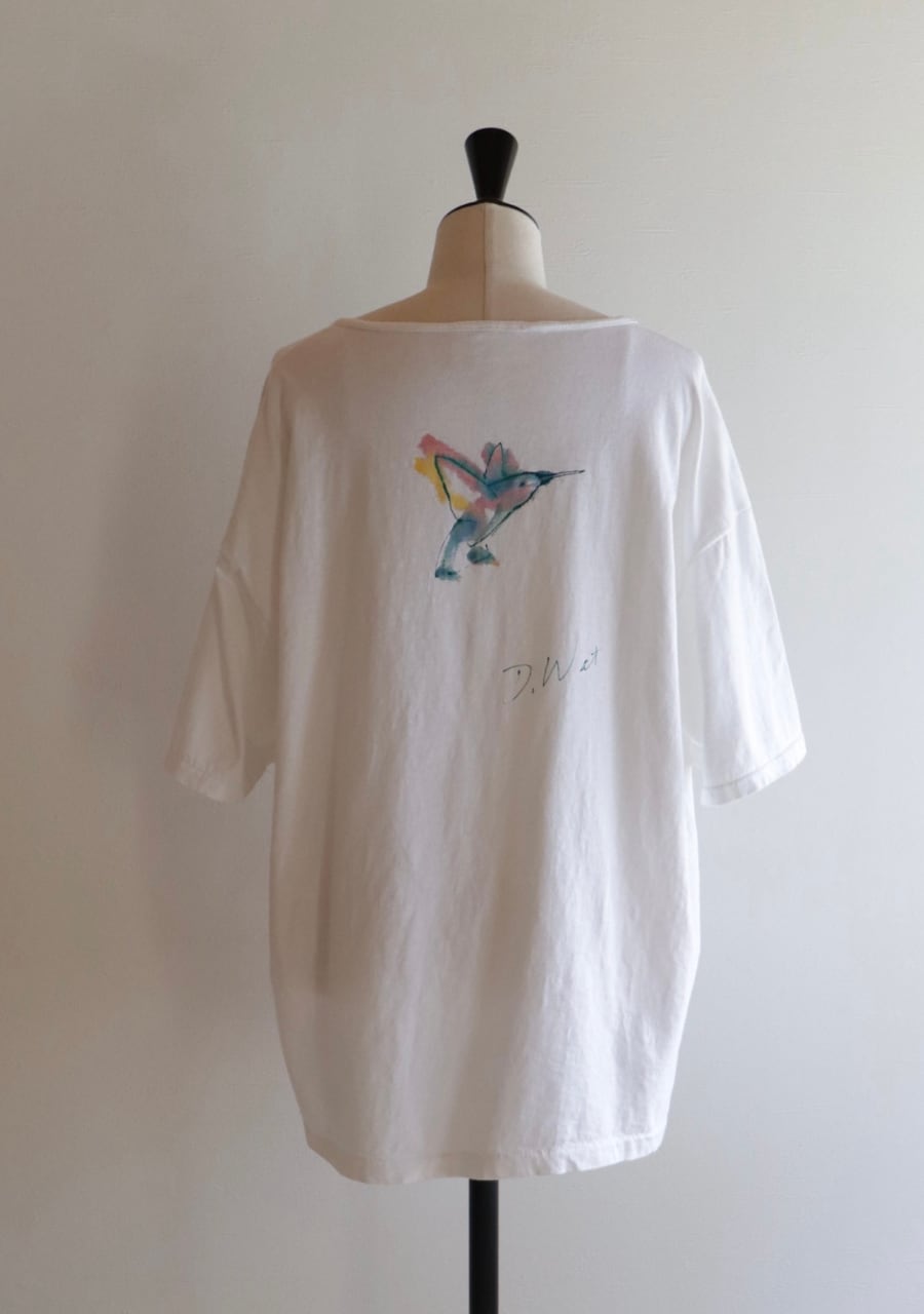 アーティステックな猫のプリントが可愛いTシャツ。サイズ感も良く女性らしく華やかな印象。さりげないバックのプリントも可愛い。コーディネートの主役になるアイテム。Tシャツなのに首元の細い幅でのラインが女性らしくカジュアル過ぎず、キレイ目合わせでカッコ良くも。これは大変おすすめ!