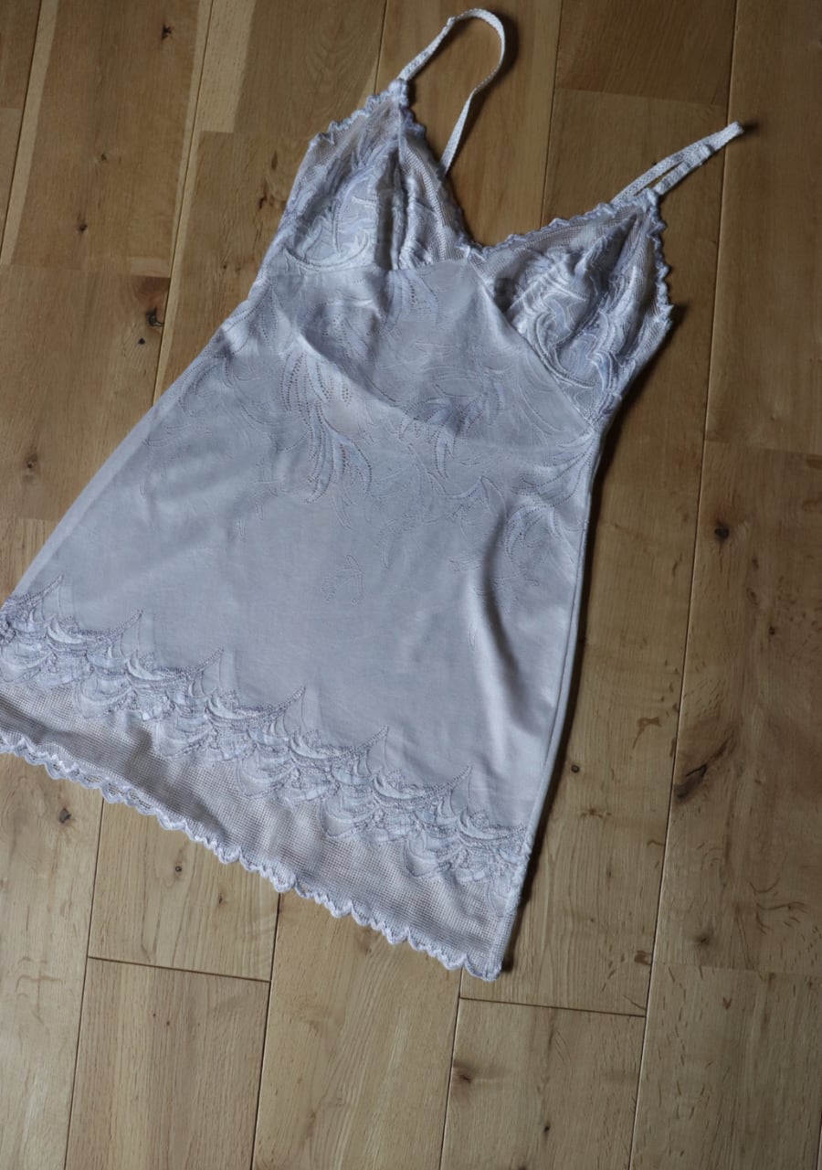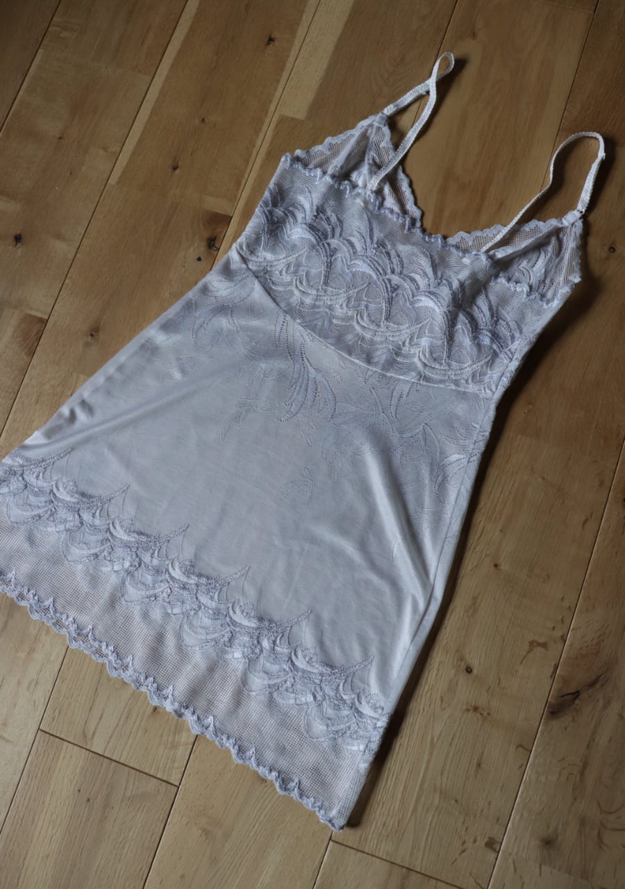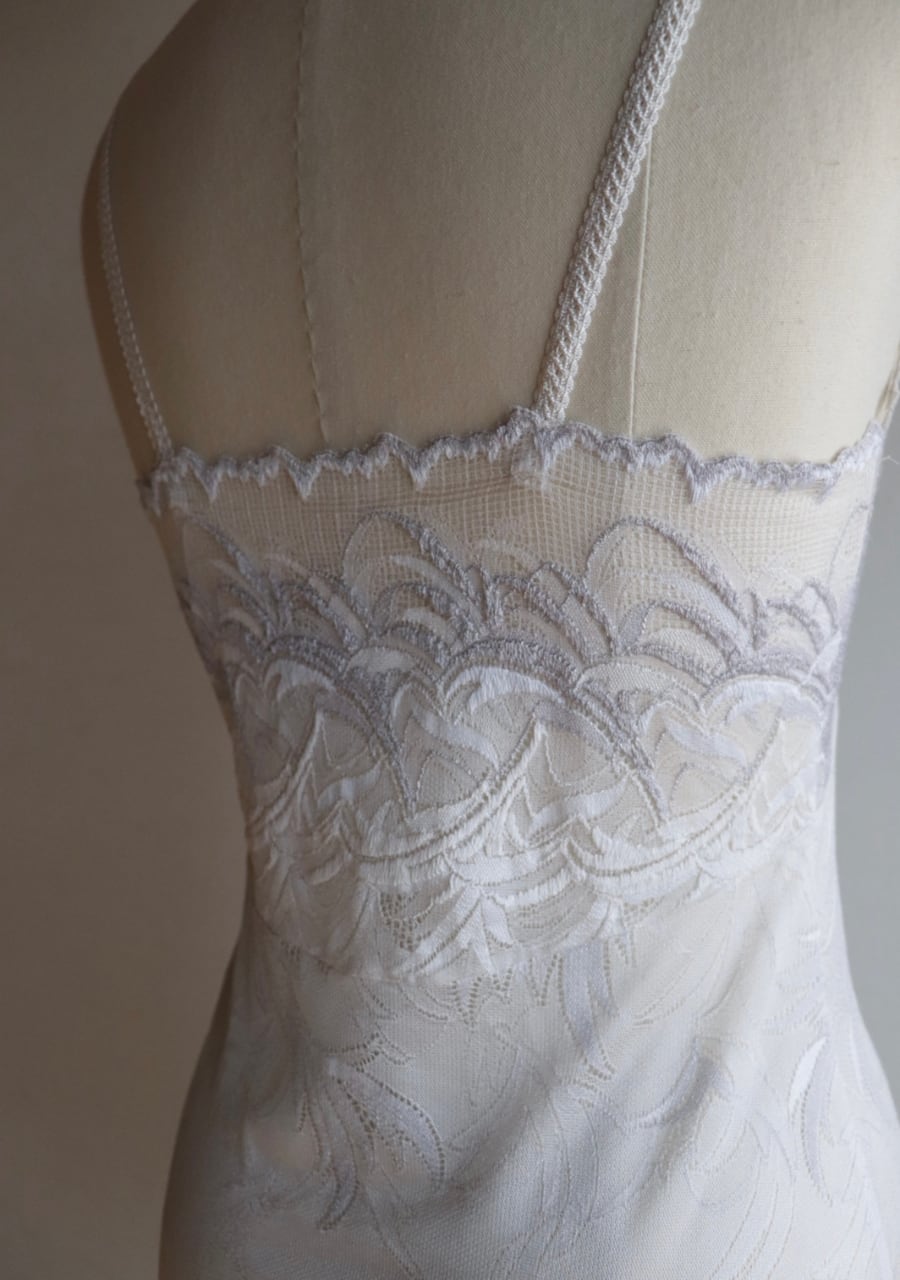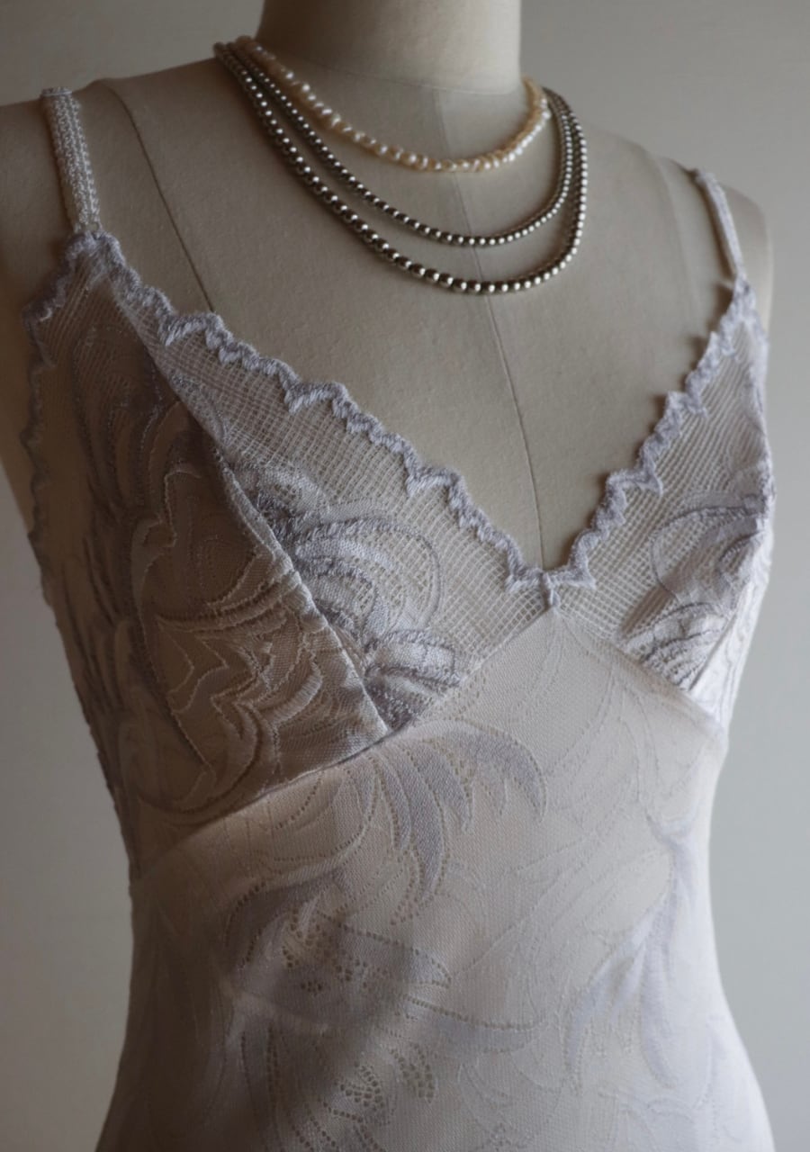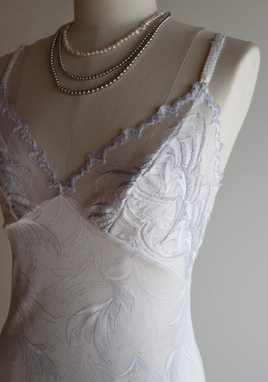 伸縮性があり透け感のある生地。レースにバリエーションがあり一枚に込められた素敵なスリップ。色味も良く刺繍もクールな印象。伸縮性が高く体のラインに綺麗に添ってくれます。透け感のある生地はレイヤードでインナーの色味と楽しんてスタイリングすることが可能。奥行きのあるスタイリングを楽しめます。着丈も程よく可愛い。女性らしさと華やかさをプラスできるアイテムで季節を問わず楽しんでいただけます。