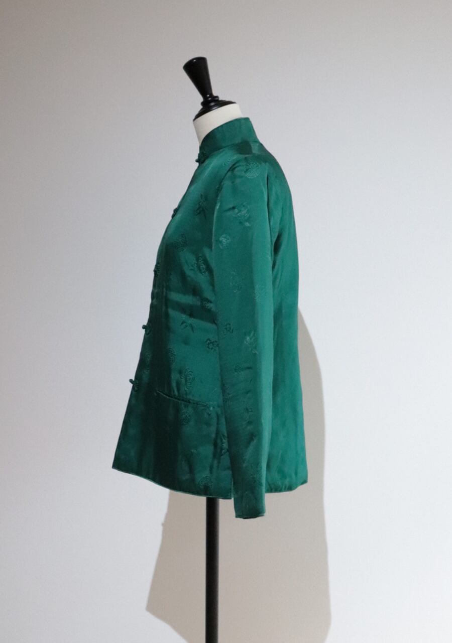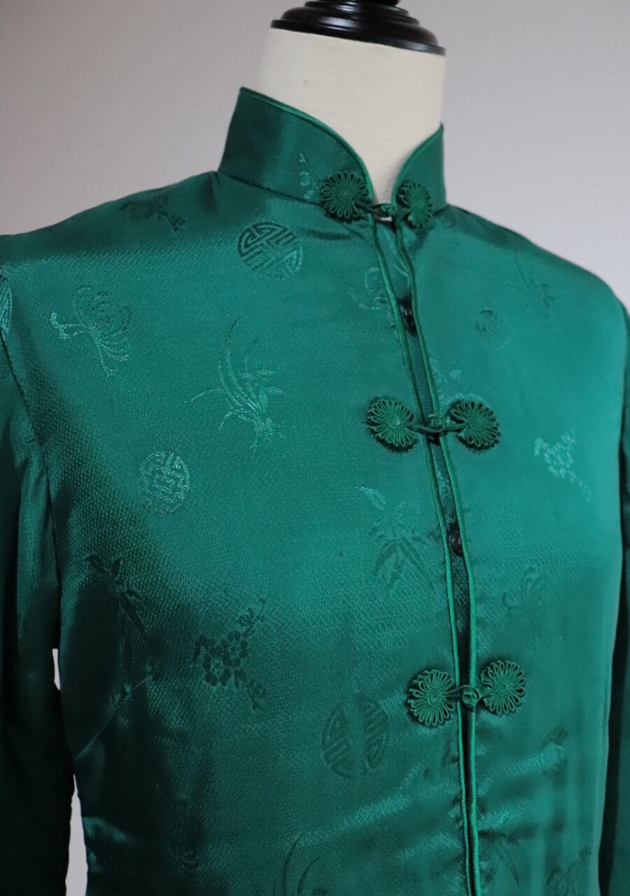 サテン素材のチャイナデザインで胸のボタンリボンも可愛い!羽織るだけでおしゃれなアウター。ウエストスリムなデザイン。中綿で入りで暖かいアウターです。サテンの艶で大人っぽい印象に。