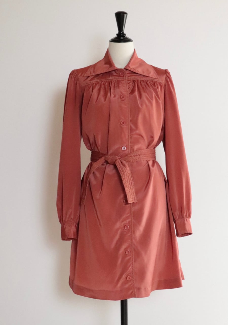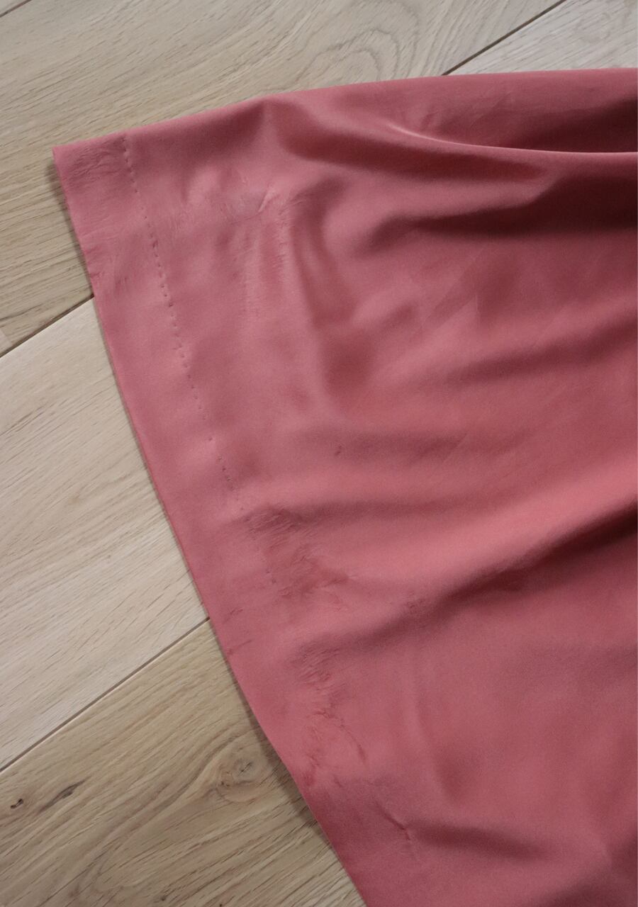 薄手の生地で色味とシルエットが可愛い。ほどよい艶が女性らしい印象。