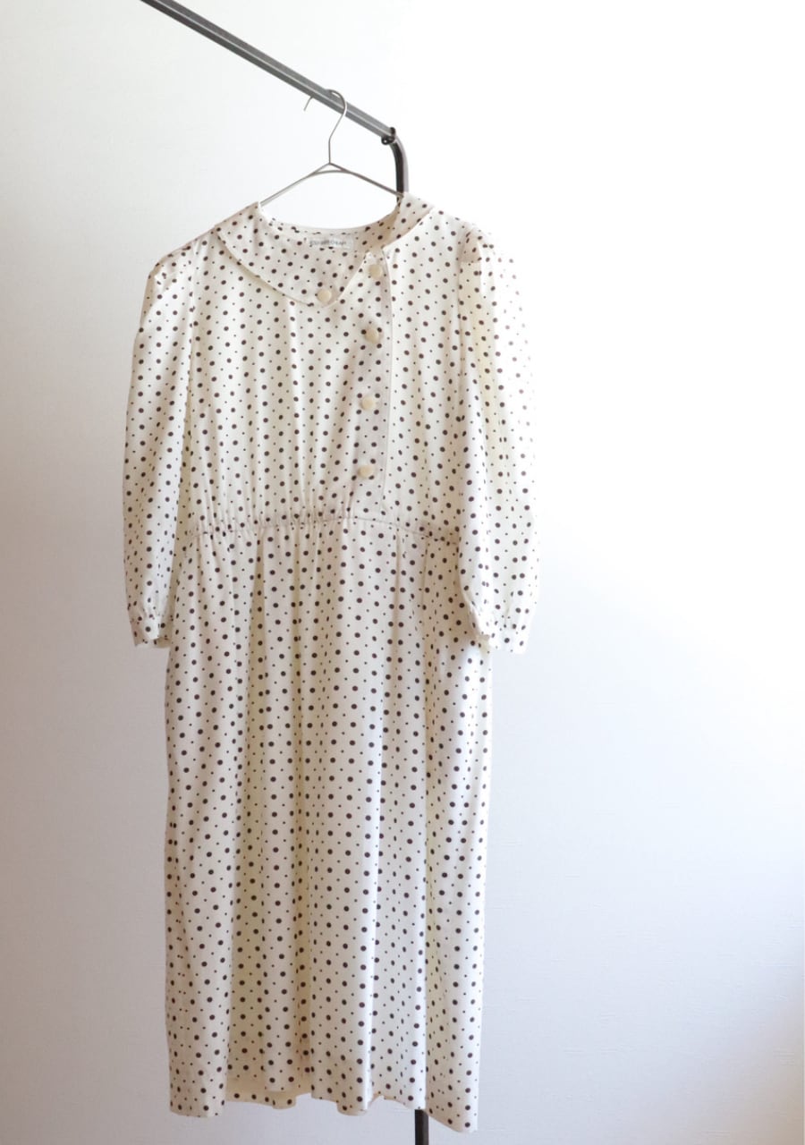 爽やかでかわいいドット柄ドレス!使用感があまりなくきれいな状態。フロントのボタンと襟のデザインがかわいい!!スカート部分には裏地があります。