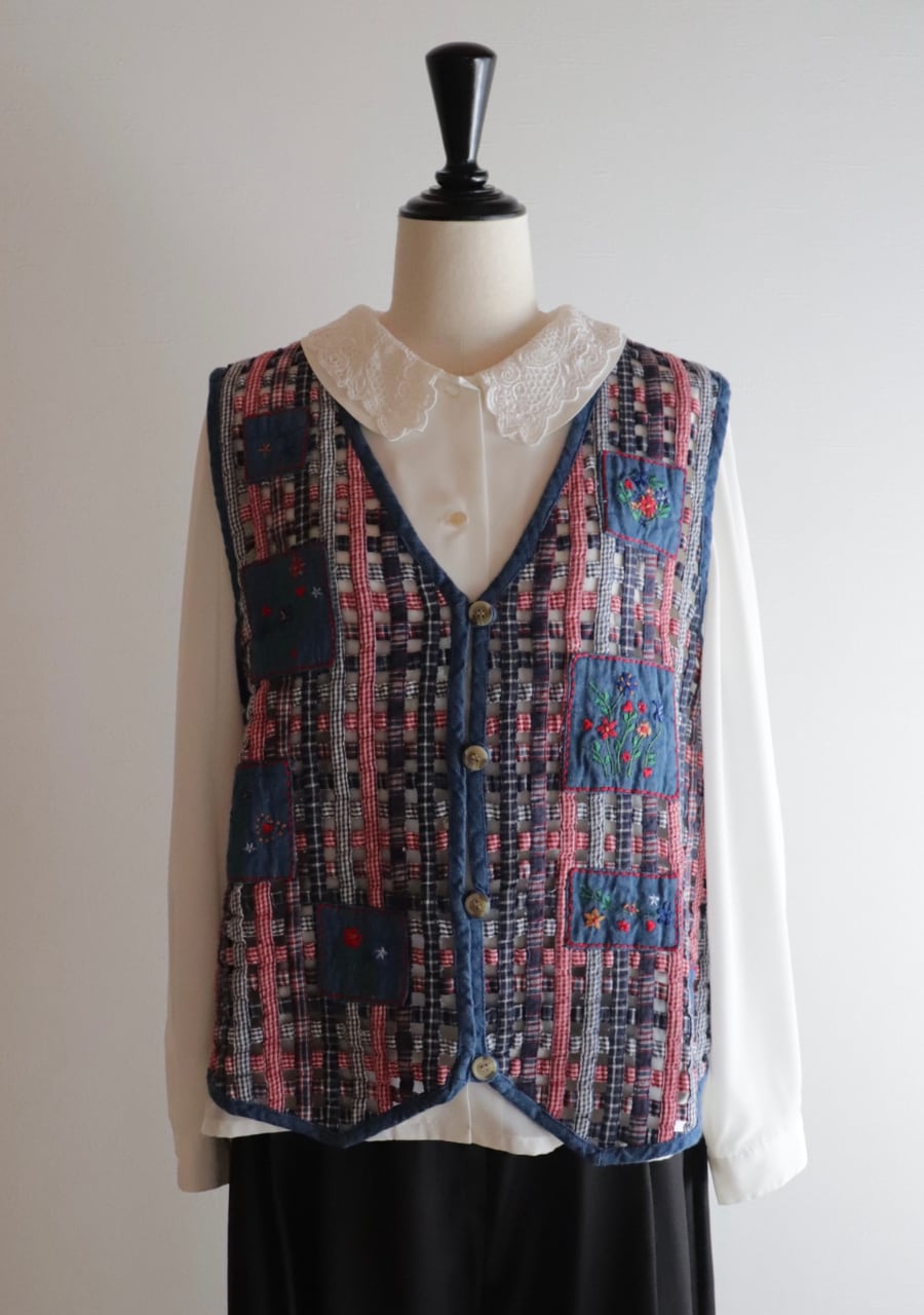 格子状になっていて花柄の刺繍もあり可愛い。コーディネートのポイントアクセントになります。